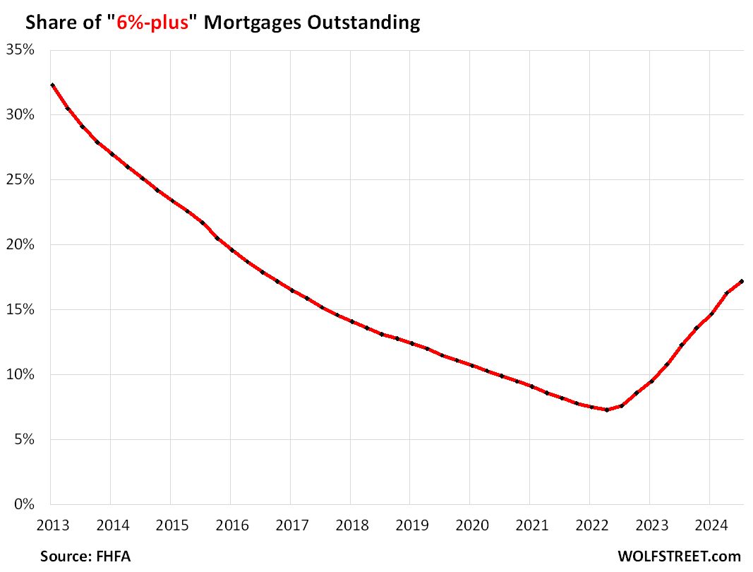 Obviously, this share of 17.2% is still very low. But the share more than doubling in two years is a rapid increase. It reflects purchase mortgages and refinance mortgages with rates of 6% or higher.
