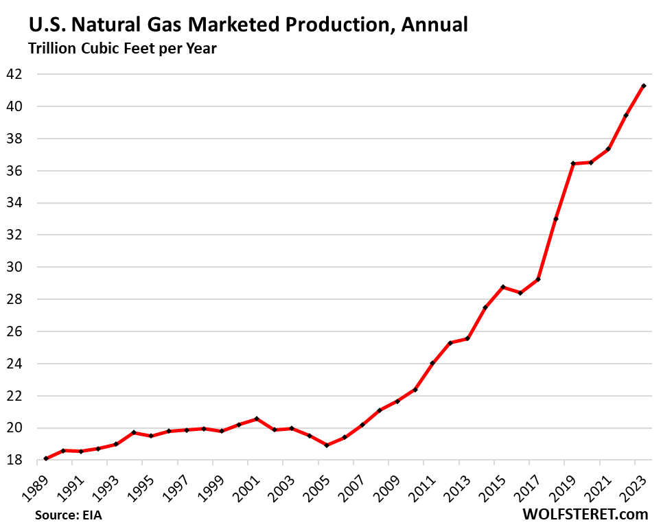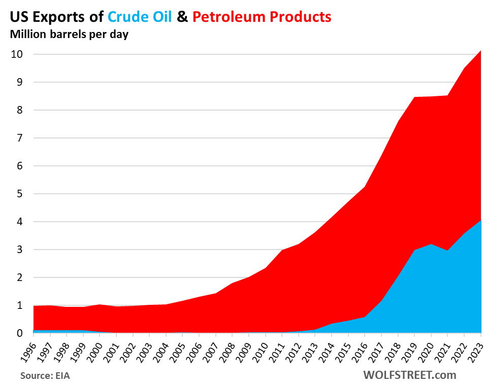 Drill baby drill has been the rule in US for many years, has made the US the largest oil and gas producer in the world, has made the US the largest LNG exporter in the world, has made the US a net exporter of petroleum and petroleum products, and has caused prices of oil and gas to collapse multiple times and for long periods to where hundreds of these oil and gas drillers when bankrupt during each wave. I have called the episode that occurred in 2014-2016 the Great American Oil Bust. Lots of stories on this site about oil and gas drillers going bankrupt, with lists, etc. And then just after the industry and oil prices seemed to recover, there comes the second wave in 2020. Now the industry wants to exercise discipline, rather than over-produce, to keep the price where it is so they can make money and stay in business. The LAST thing they want is for the oil price to drop. Trump is going to have a hard time persuading them that a lower oil price is somehow good for them.