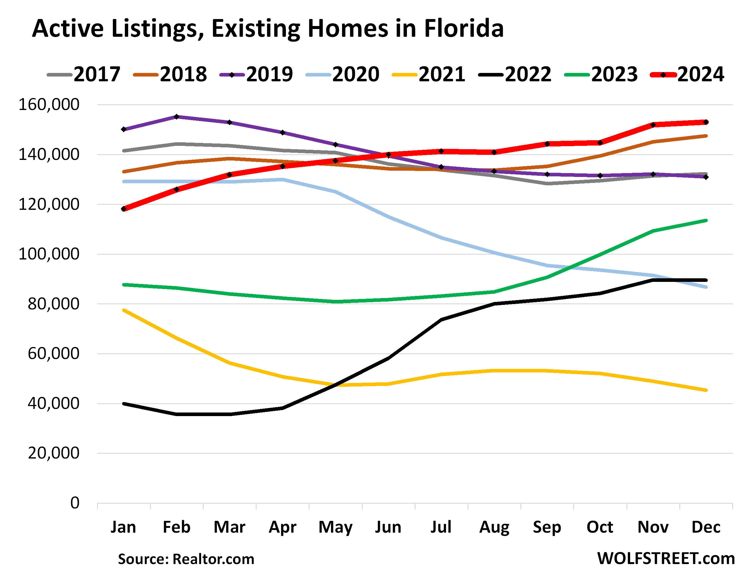 And yes, prices are stubborn but they’re coming down in the South, I’ve already shown you the charts of existing-home prices of the Texas cities, with Austin prices having dropped about 20% from mid-2022, and with Tampa down about 10%.