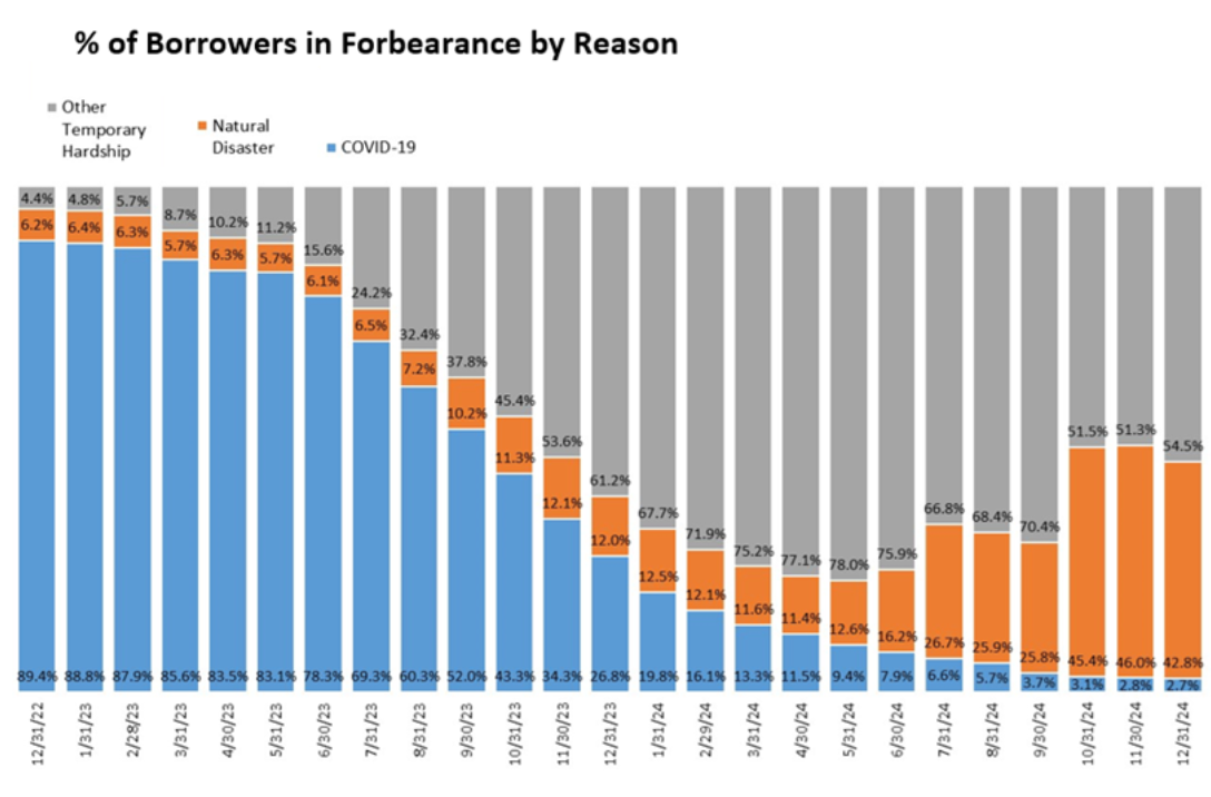 I think you’re asking what happened to the balances that weren’t paid during forbearance. They were not wiped out. When a borrower exits COVID-19 forbearance, the unpaid principal and interest is packaged up into a secondary loan. It accrues no interest and requires no payments until the primary mortgage is paid off, at which point the entire thing is due at once.