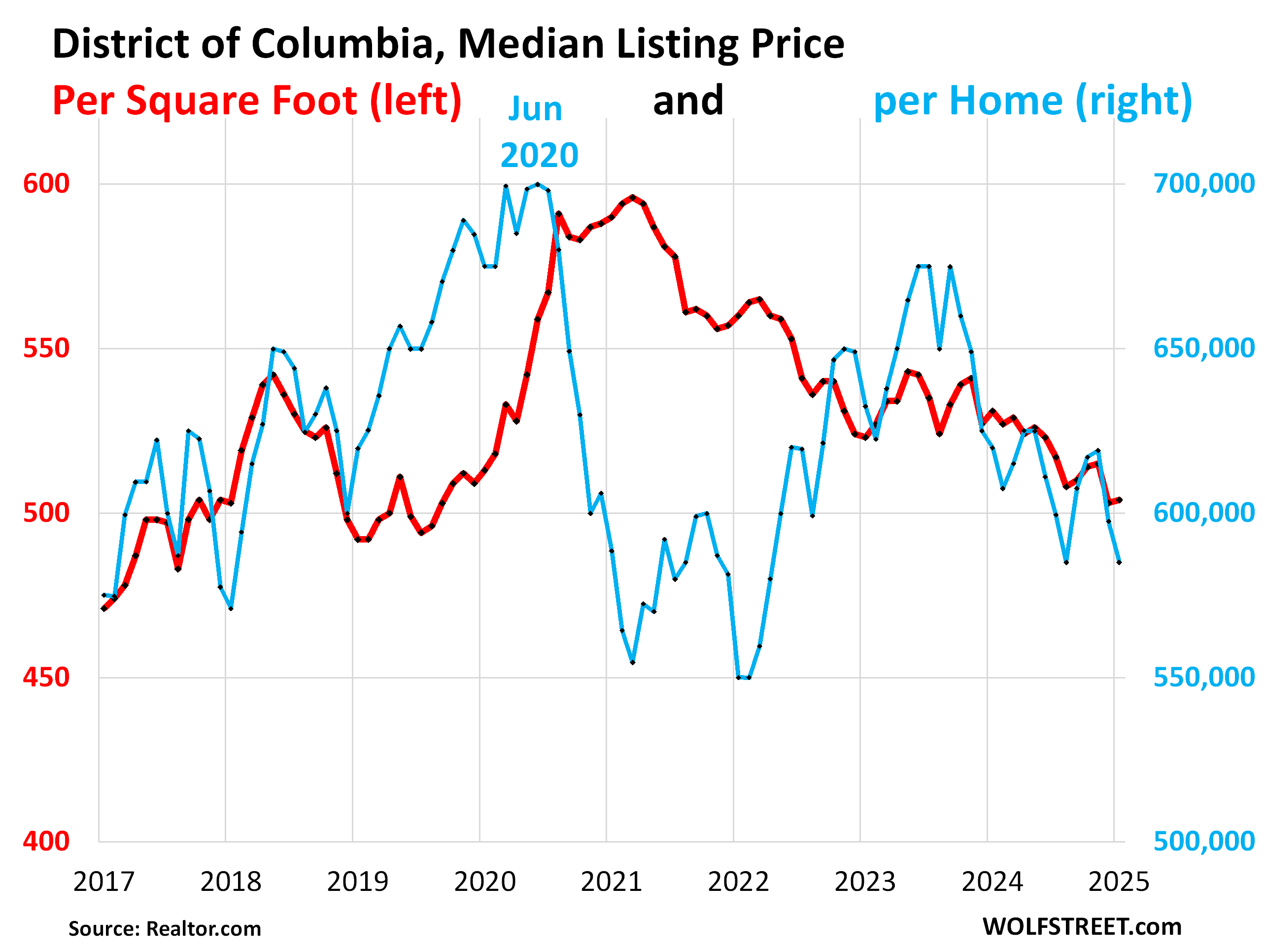 Home prices in Washington, DC, have plummeted since the Trump administration and the Department of Government Efficiency began discussing layoffs. Since Donald Trump took office, Elon Musk’s Department of Government Efficiency (DOGE) has fired thousands of federal workers in a push to reduce spending. In the wake of those layoffs, droves of former federal employees have packed up their bags and put their homes on the market, causing the average listing price to sink, The Kobeissi Letter (TKL) reported. In November, the median home in the nation’s capital was worth $699,000, according to Redfin. By February, the median home value dropped 20 percent, bringing the price down to $560,000.