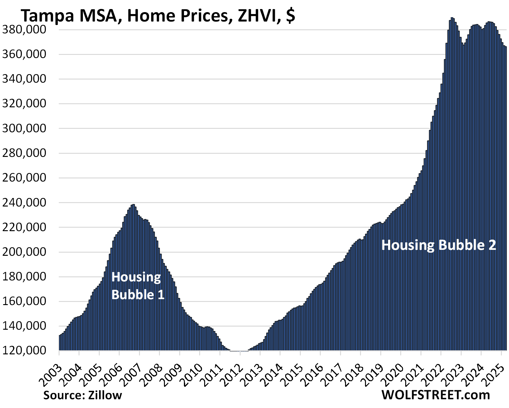 Home prices have started to move lower in many metros, including in Florida: The Most Splendid Housing Bubbles in America, March 2025: The Price Drops & Gains in 33 of the Largest Housing Markets