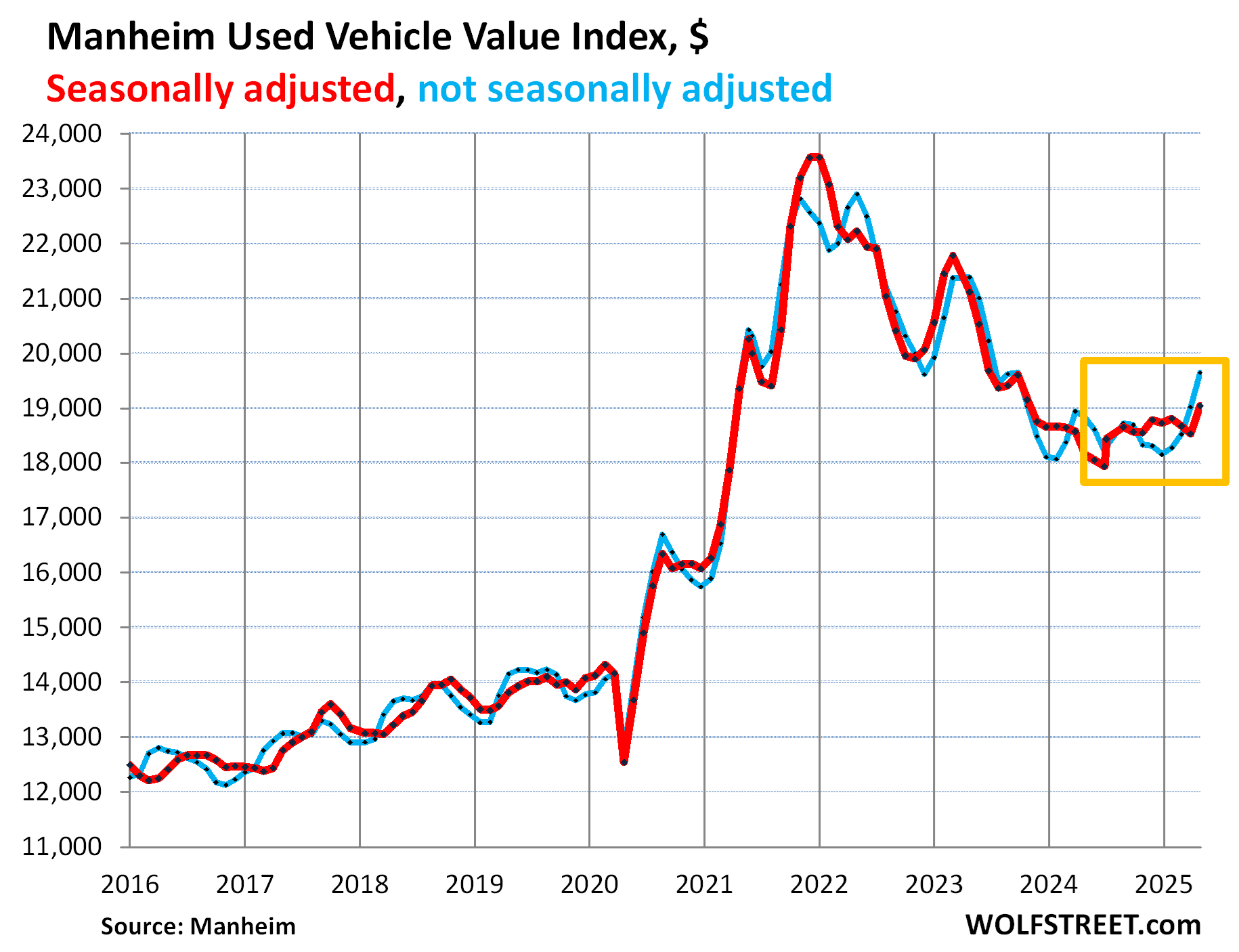 Manheim used vehicle index up 2.7% from March and up 4.9% year over year. Price increases coming on new 2026 models. Probably also a decrease in some model availability further limiting supply. I’ve already seen some price increases on parts for an BMW I am restoring.