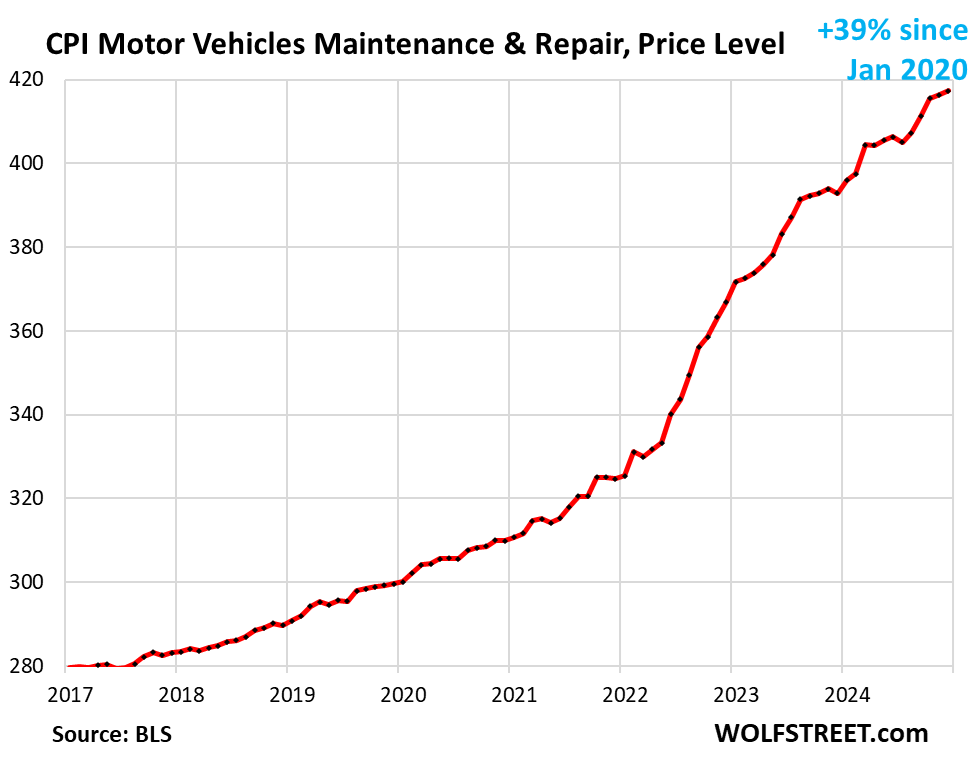 The CPI for motor-vehicle maintenance & repair jumped by 0.67% (+8.3% annualized) in April, the second-worst month-to-month increase since October, the worst having been in March.