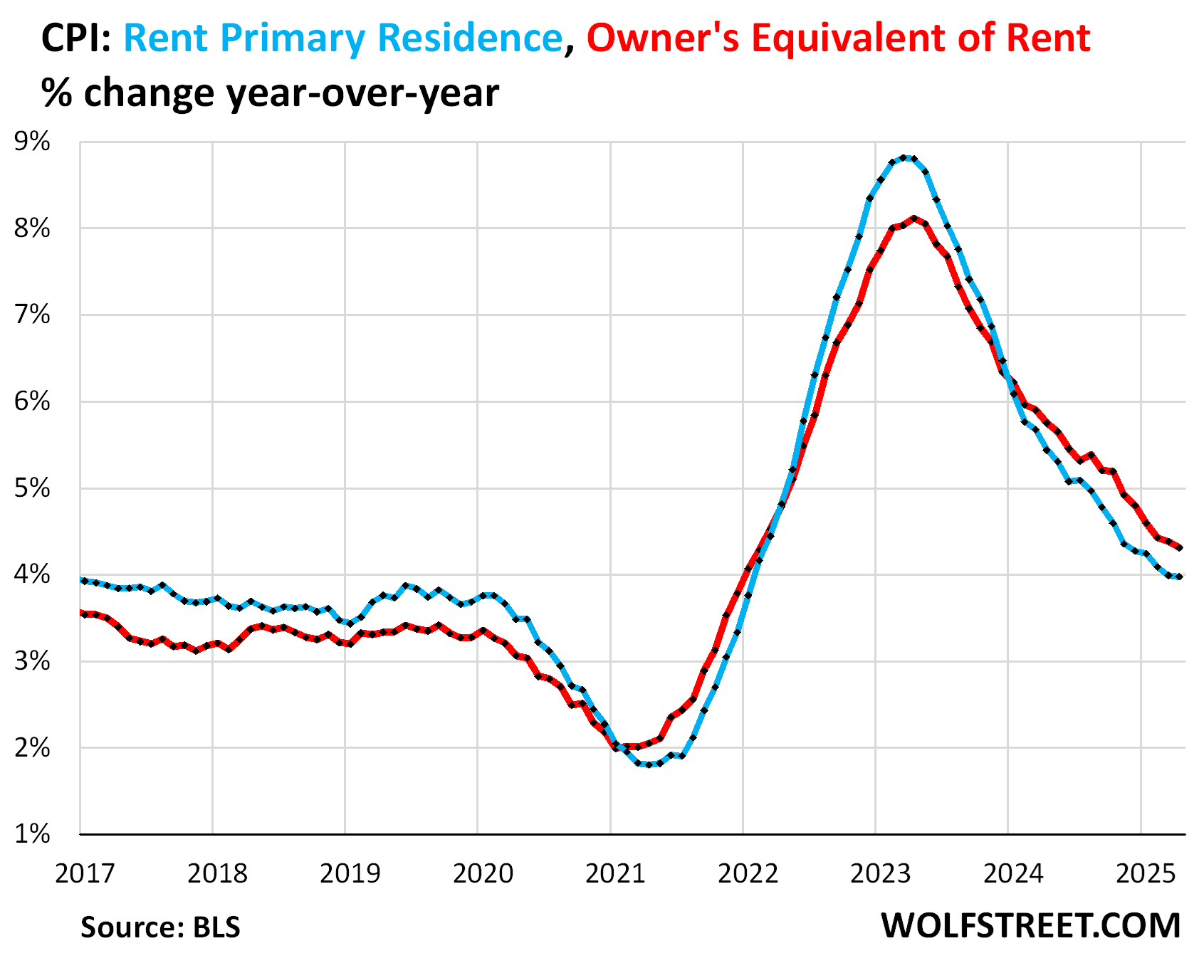 Rent of Primary Residence CPI rose by 0.34% (+4.2% annualized) in April from March, the second acceleration in a row.