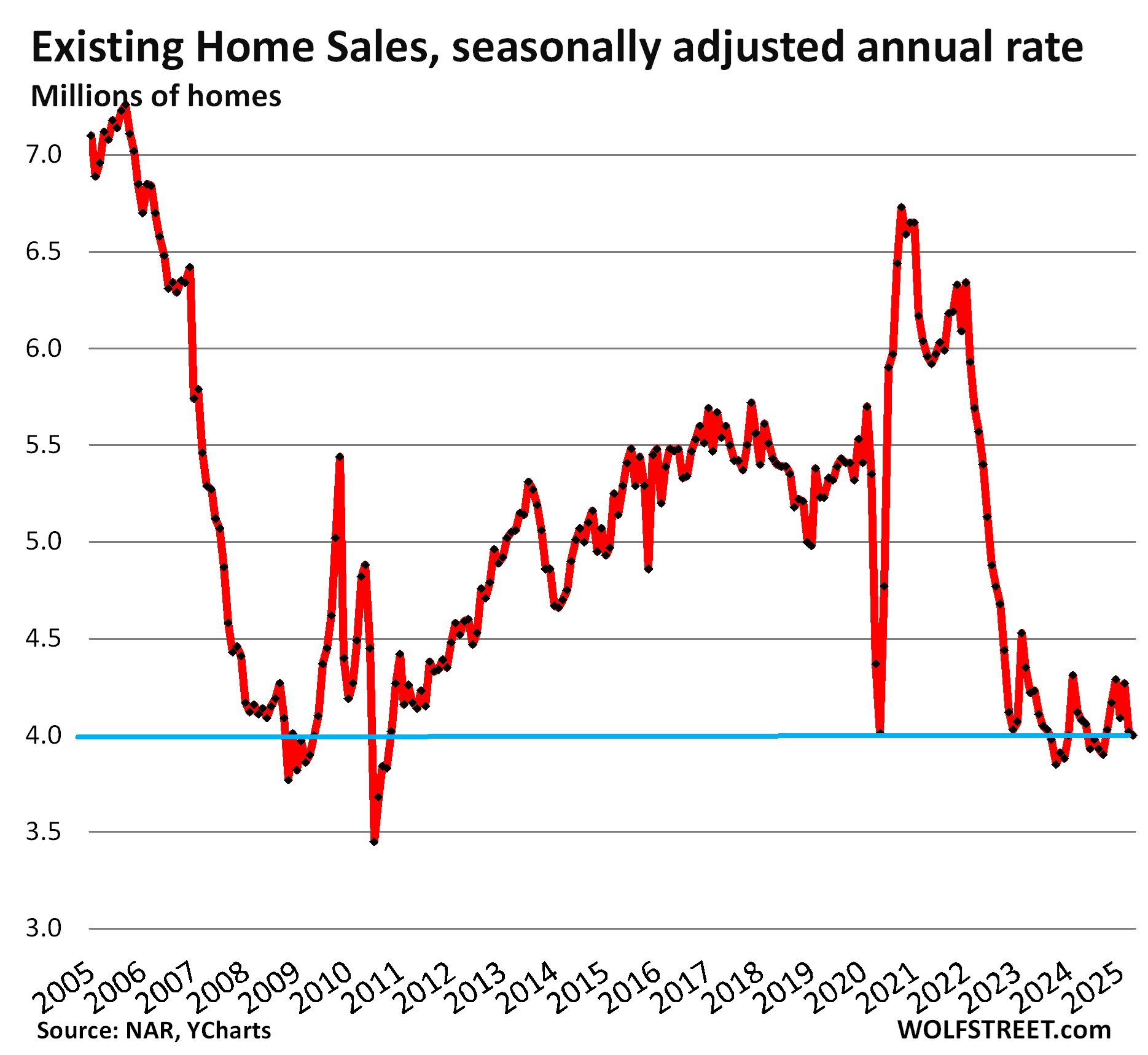 The housing industry obviously loved the Fed’s interest-rate repression because it caused home prices to explode, and so the industry blames the historically normal-ish mortgage rates for the plunge in sales without blaming the ridiculously inflated prices that the ultra-low mortgage rates produced and that are now far higher than the market can bear.