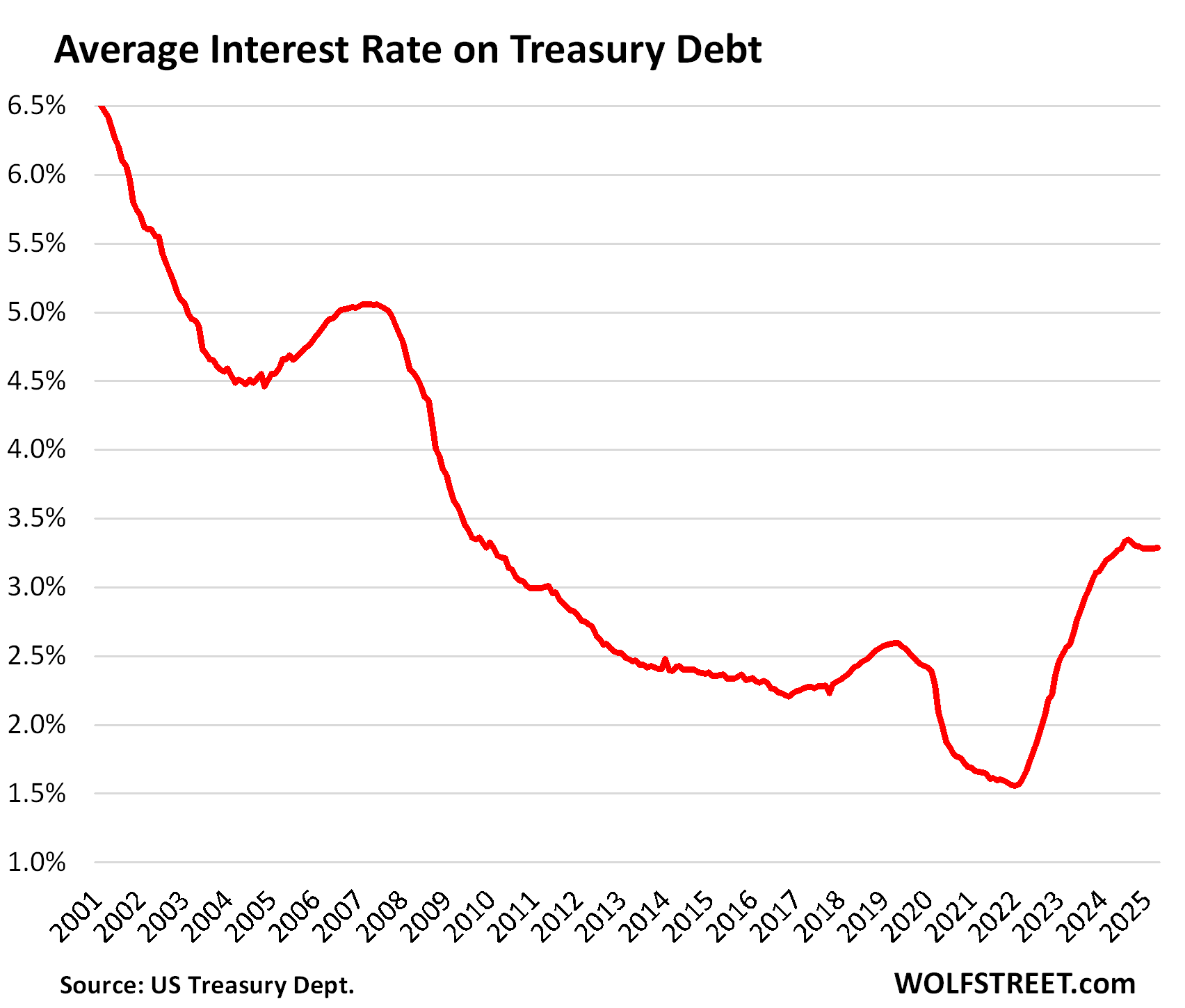 Well done, so about 3.3 average interest rate, why am I always seeing that number and using lurched is classic…you can see from 2010 to 2025 the same chart on stocks, just overlapping them…