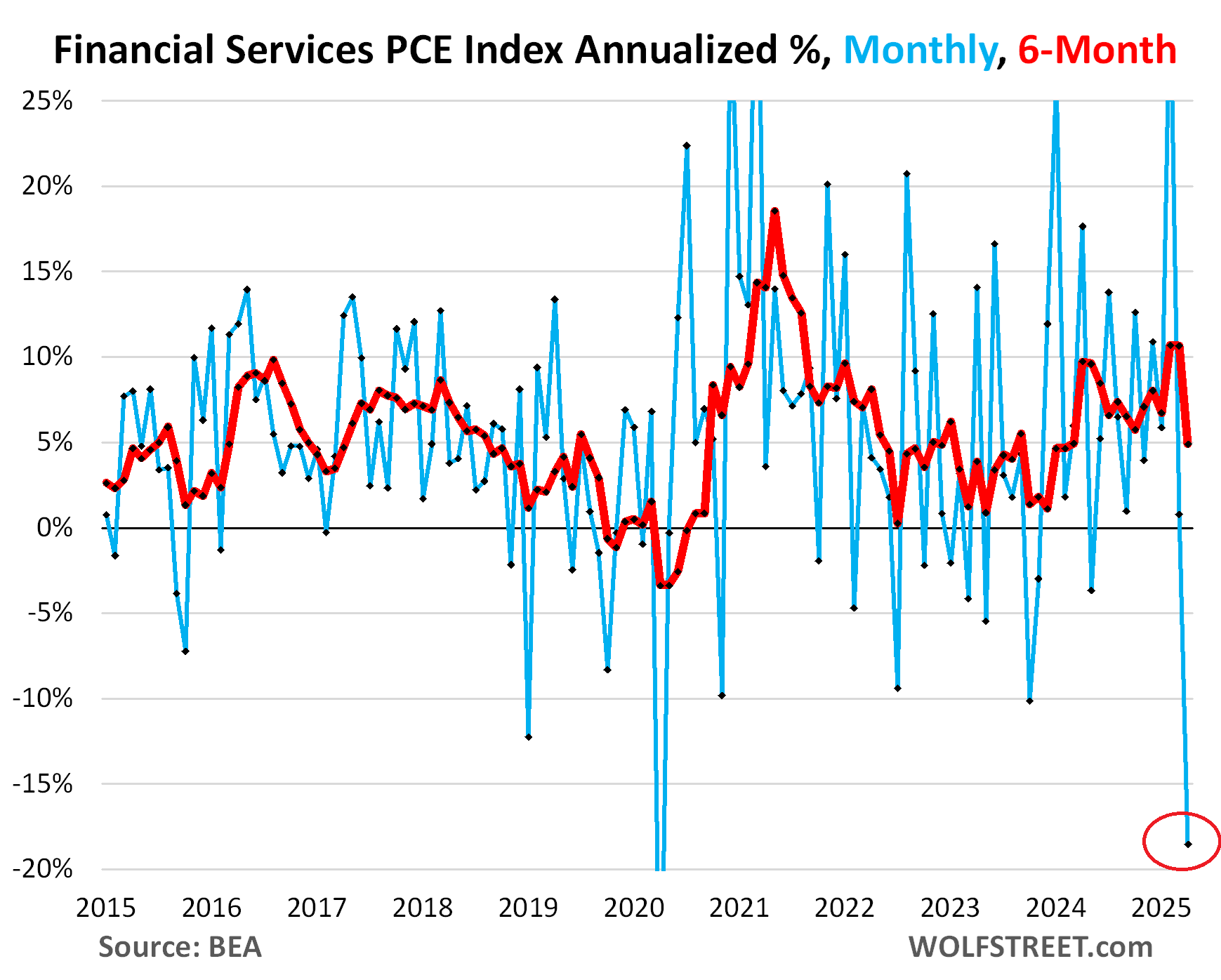 And this financial services PCE price index is hugely volatile, some of it related to sharp movements in the financial markets, as in April 2020 and in April 2025. And it will snap back.