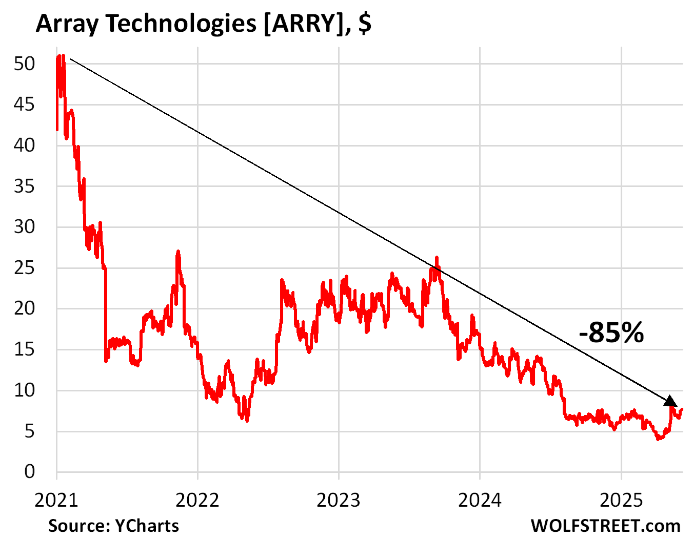 Array Technologies [ARRY], maker of ground-mounting systems for solar installations, went public via IPO in October 2020, at $22 a share and quickly rose $51.01 in January 2021, before it kathoomphed.
