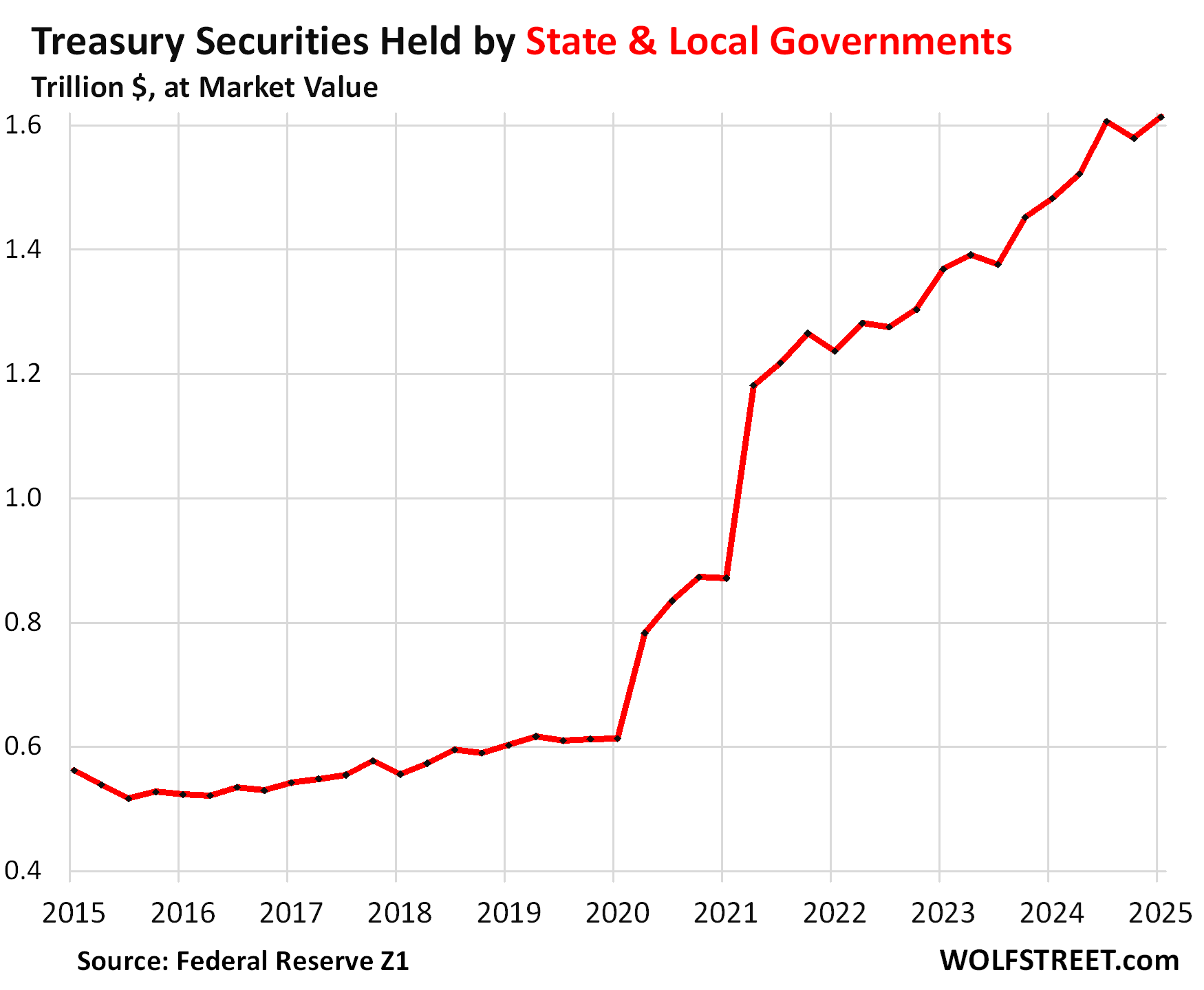During the free-money era, the manna from the federal government snowed upon state and local governments, and they had surpluses and increased their rainy-day funds, and so they plowed their extra cash into Treasury securities.