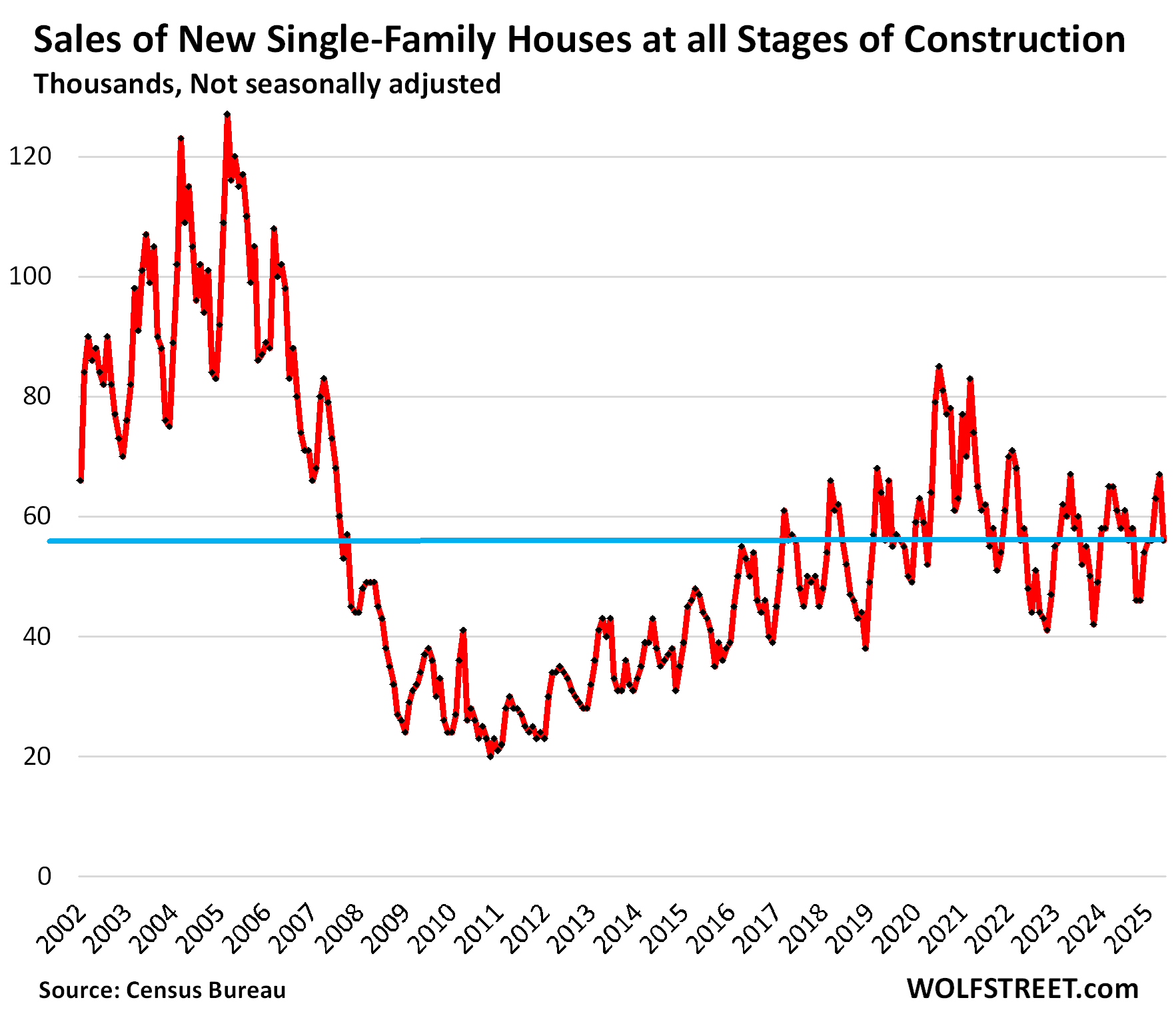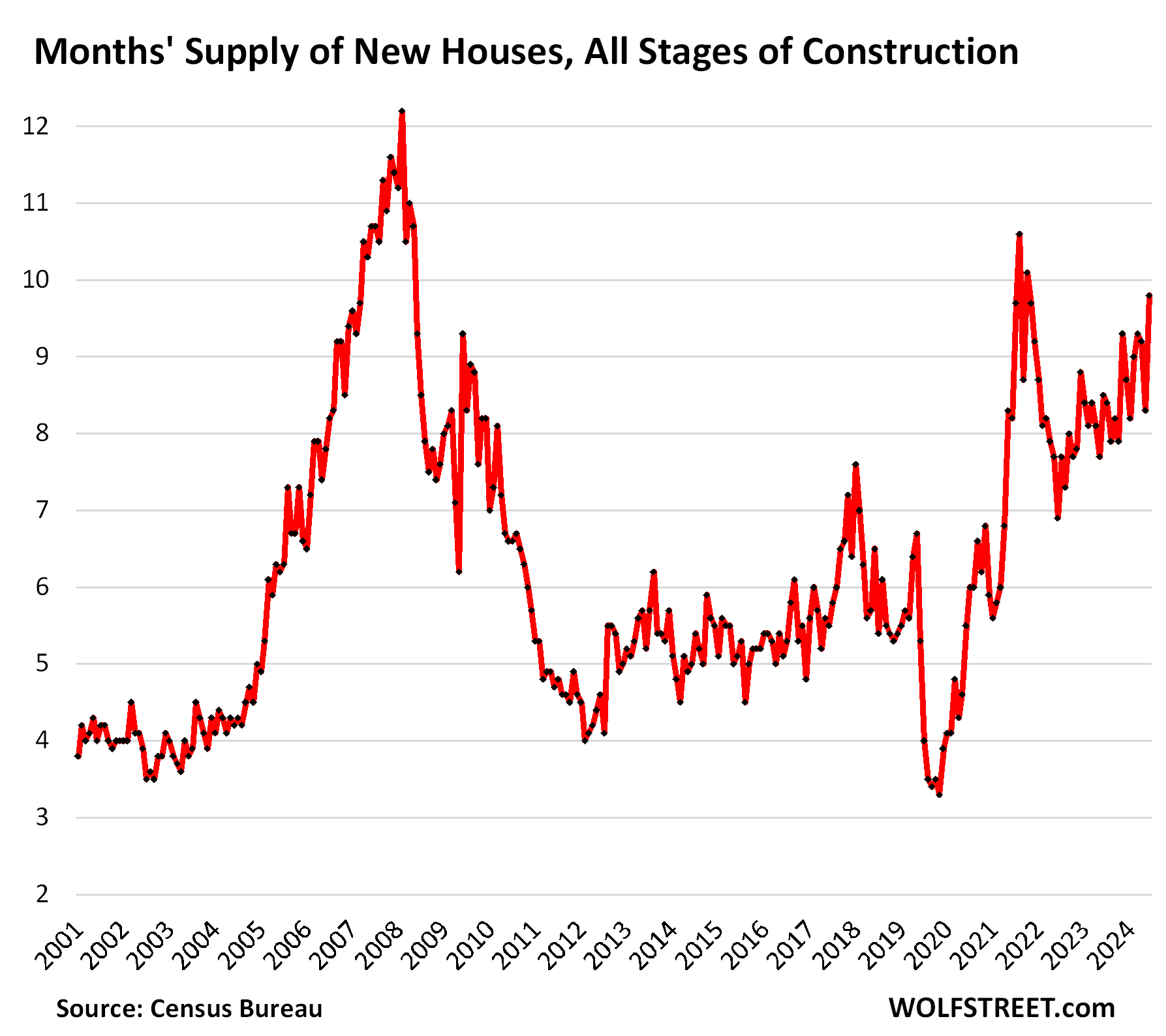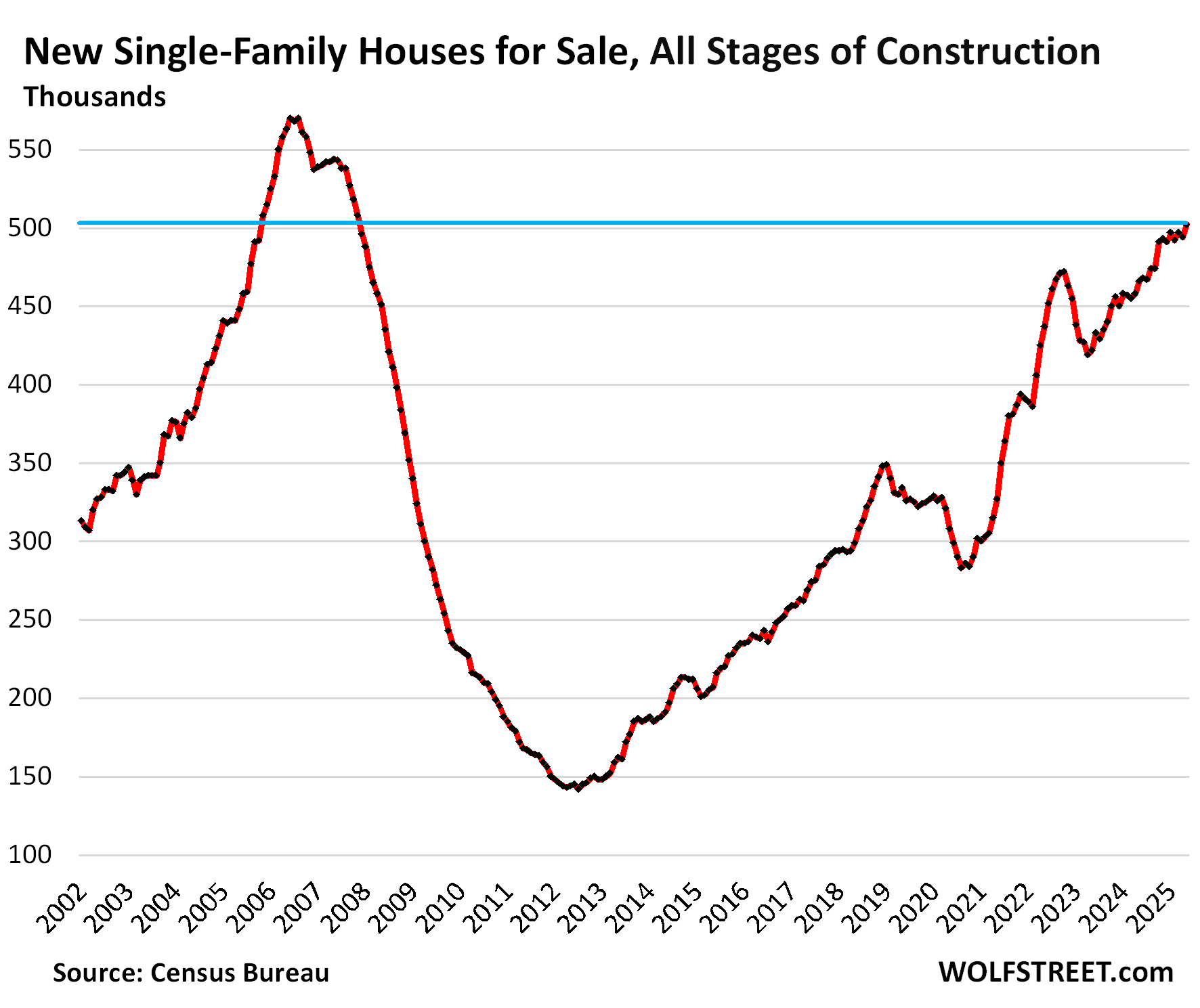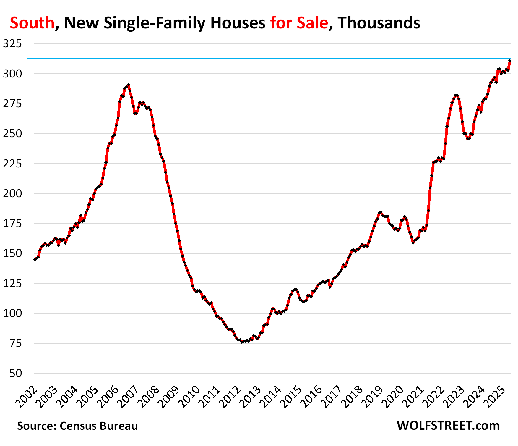 Inventory of New Single-Family Homes for Sale Highest since 2007, amid Record Pile-up in the South, as Sales Drop: Homebuilders Face a Tough Market