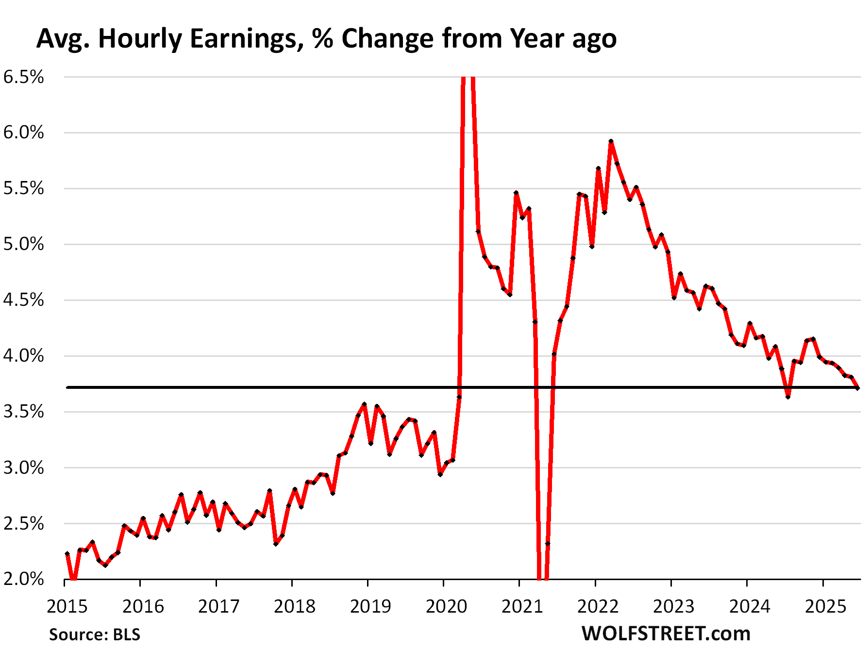 Year-over-year, average hourly earnings rose by 3.7% in June, a deceleration from May, and still well above the wage growth before the pandemic.