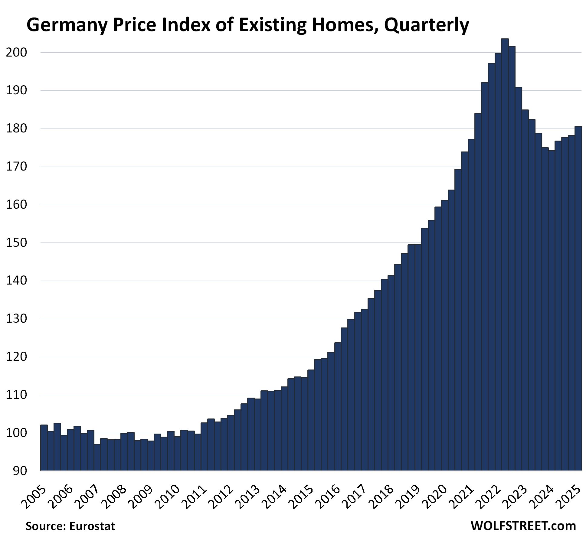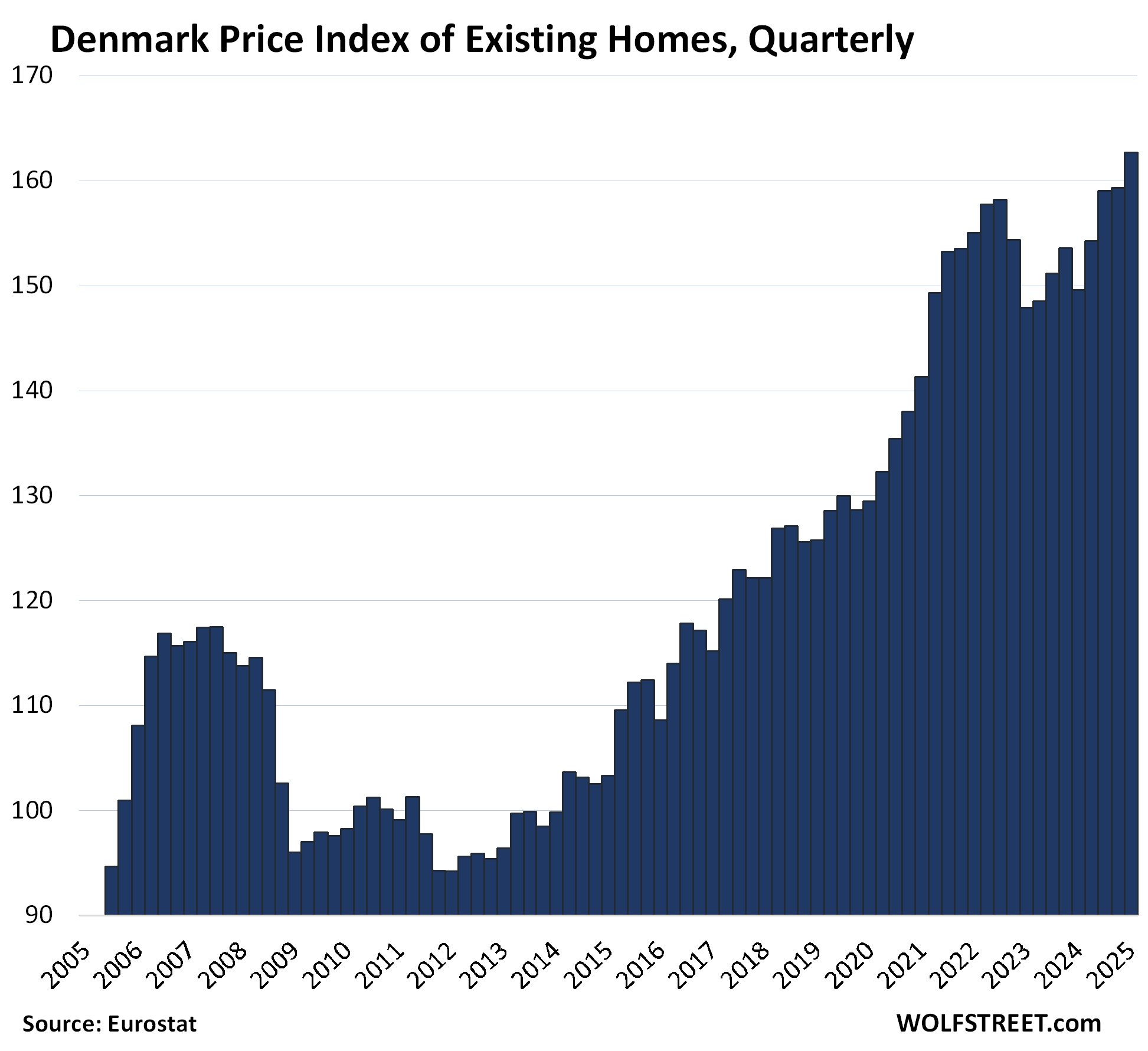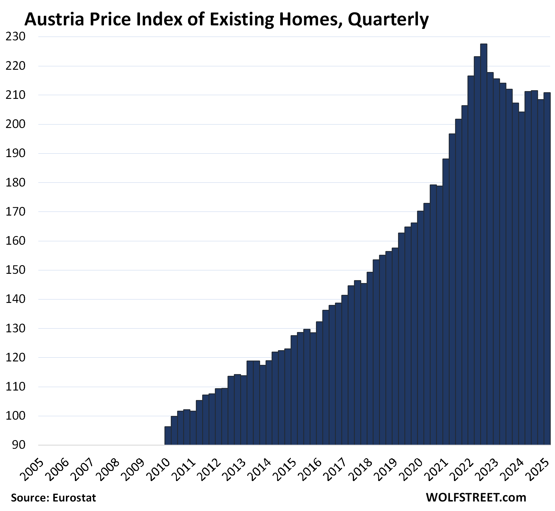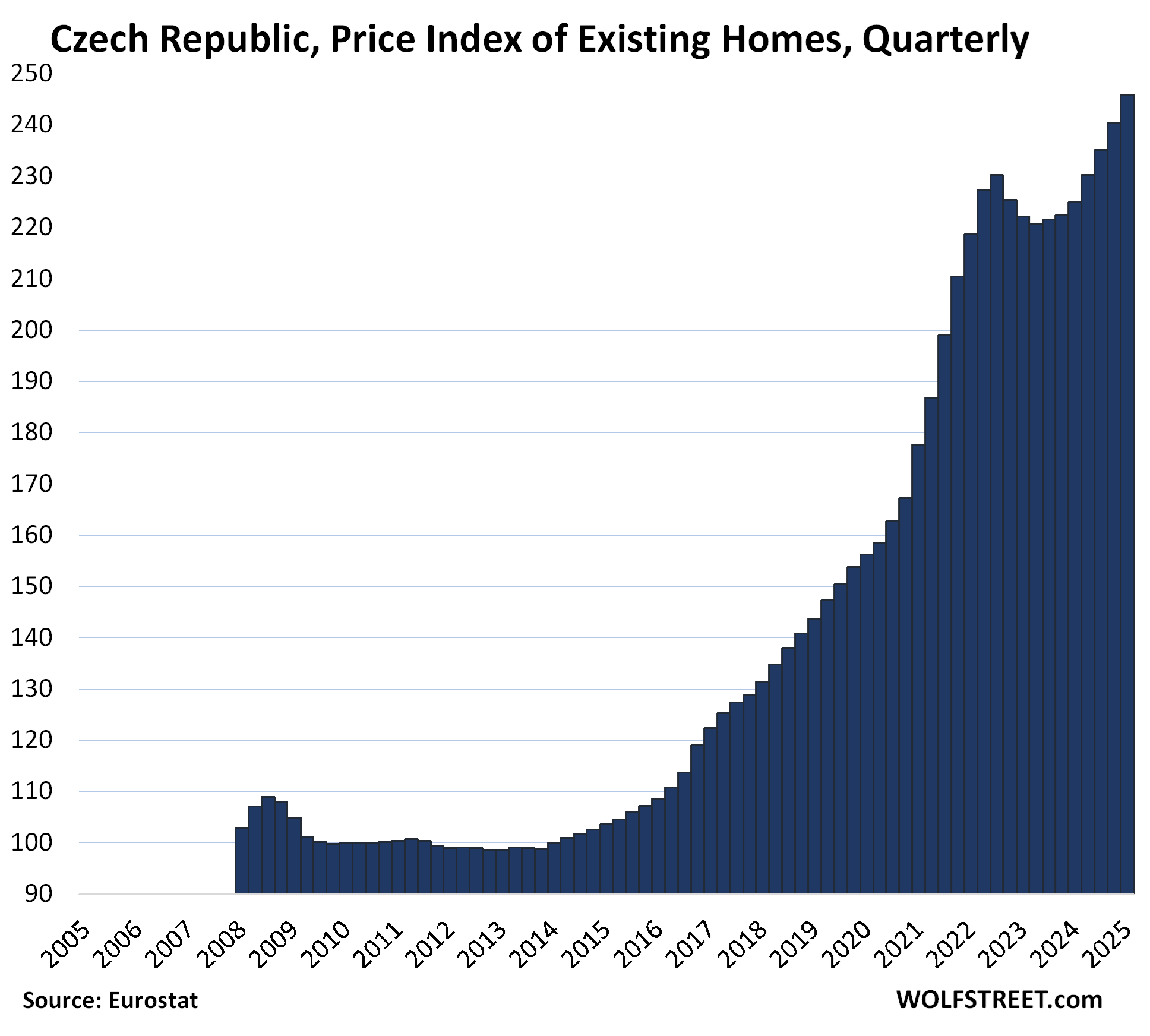 This is our second annual wild ride across sales prices of existing homes of all types (“dwellings”) in the 16 largest economies that are either in the European Union (EU) or in the European Economic Area (EEA), based on data from Eurostat through Q1, released on Friday. The data goes back to 2005 for some countries, and less far for other countries.