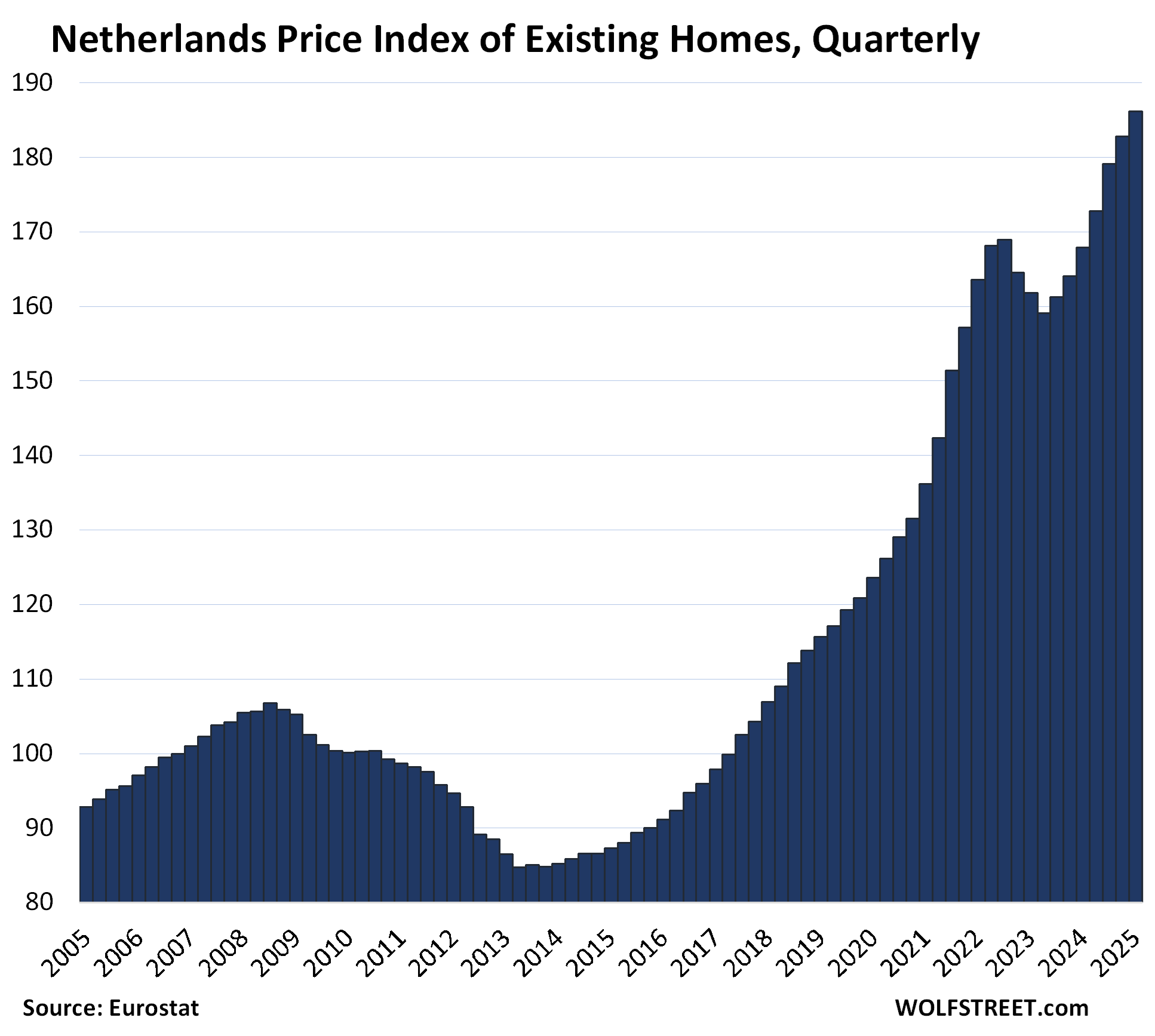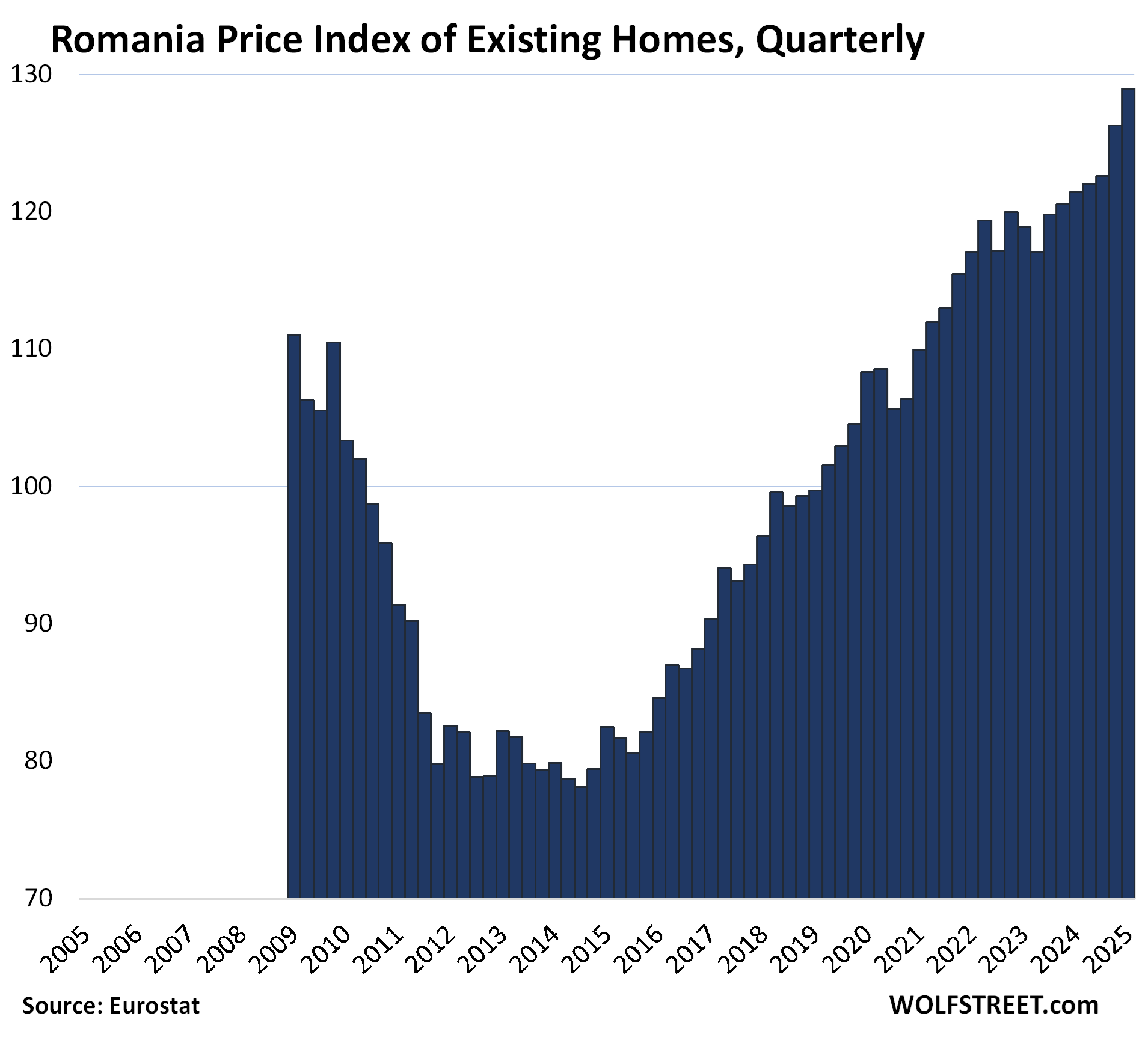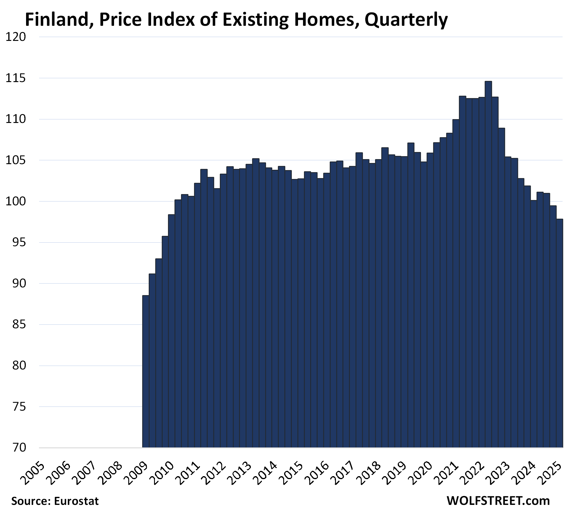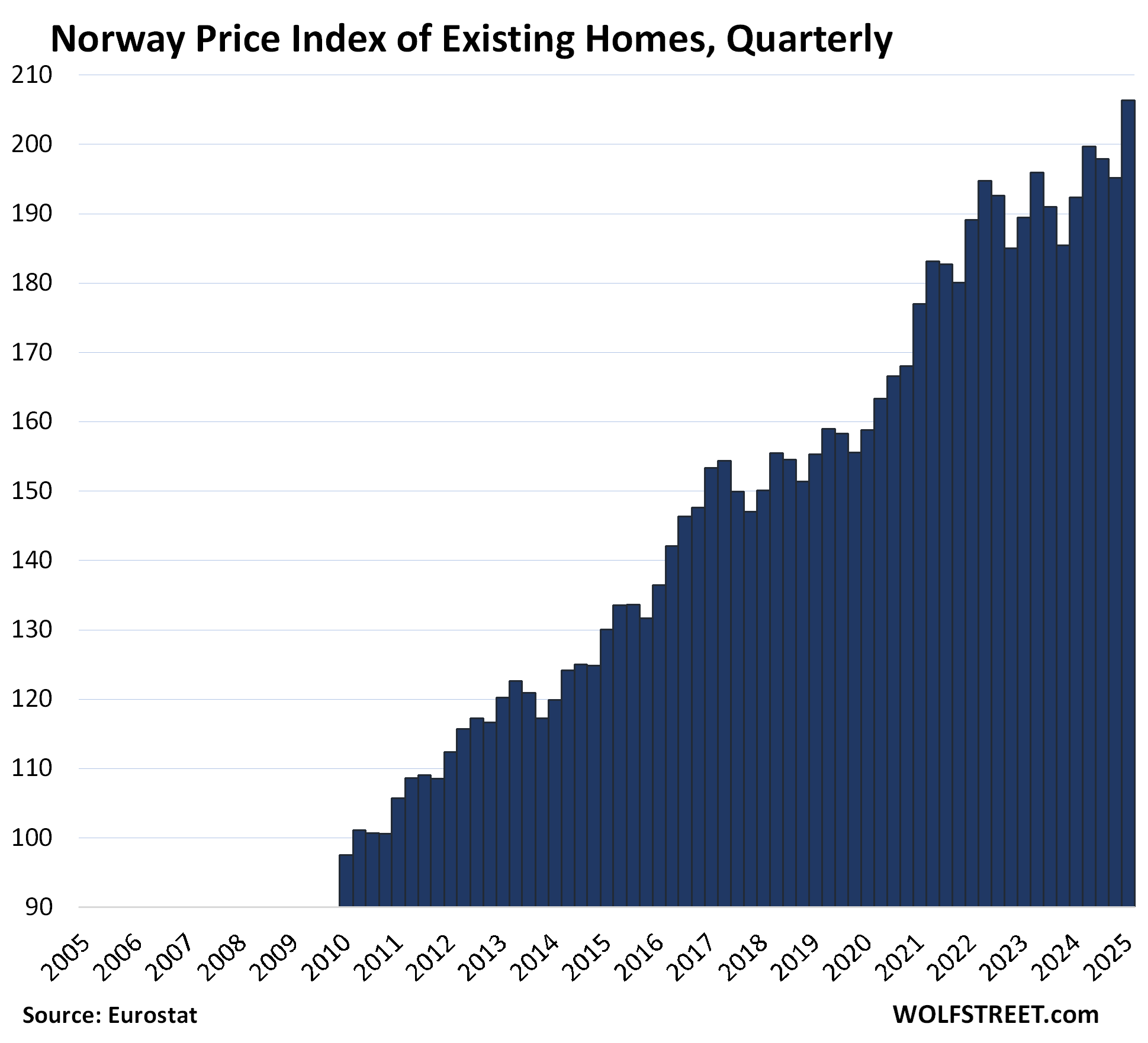 This is our second annual wild ride across sales prices of existing homes of all types (“dwellings”) in the 16 largest economies that are either in the European Union (EU) or in the European Economic Area (EEA), based on data from Eurostat through Q1, released on Friday. The data goes back to 2005 for some countries, and less far for other countries.
