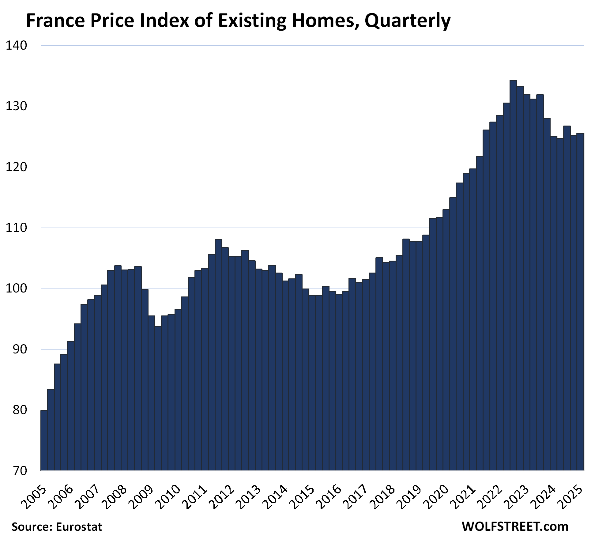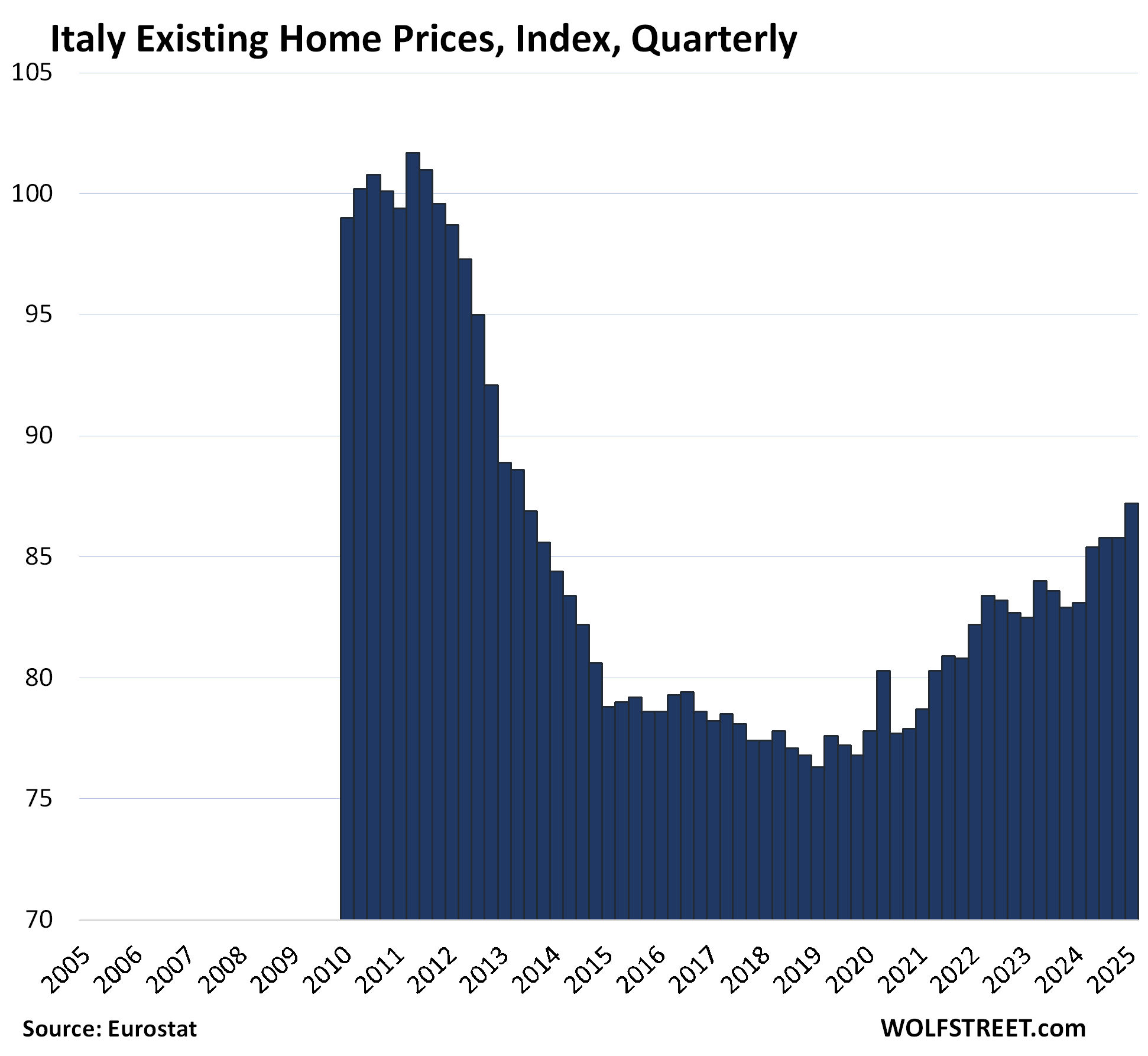 (1) % change from 2010 to the peak, whether the peak was in 2022 or in the current quarter. But in some countries, the peak was before 2010, such as in Italy and Spain, and those markets don’t have that column. (2) Quarter-over-quarter % change. (3) Year-over-year % change. And (4) % change in the current quarter from the peak.