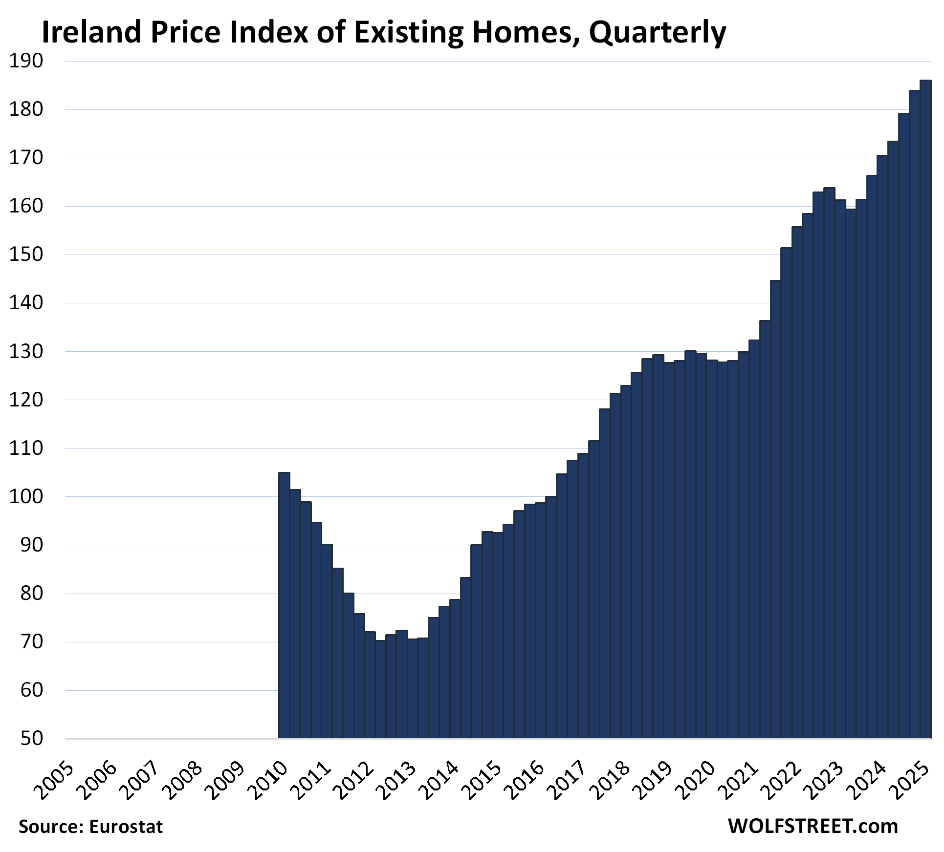 The Eurostat data only goes back to 2010, and Ireland’s troubles started earlier. But within the data, from 2010 to 2012, the index plunged by 33%.