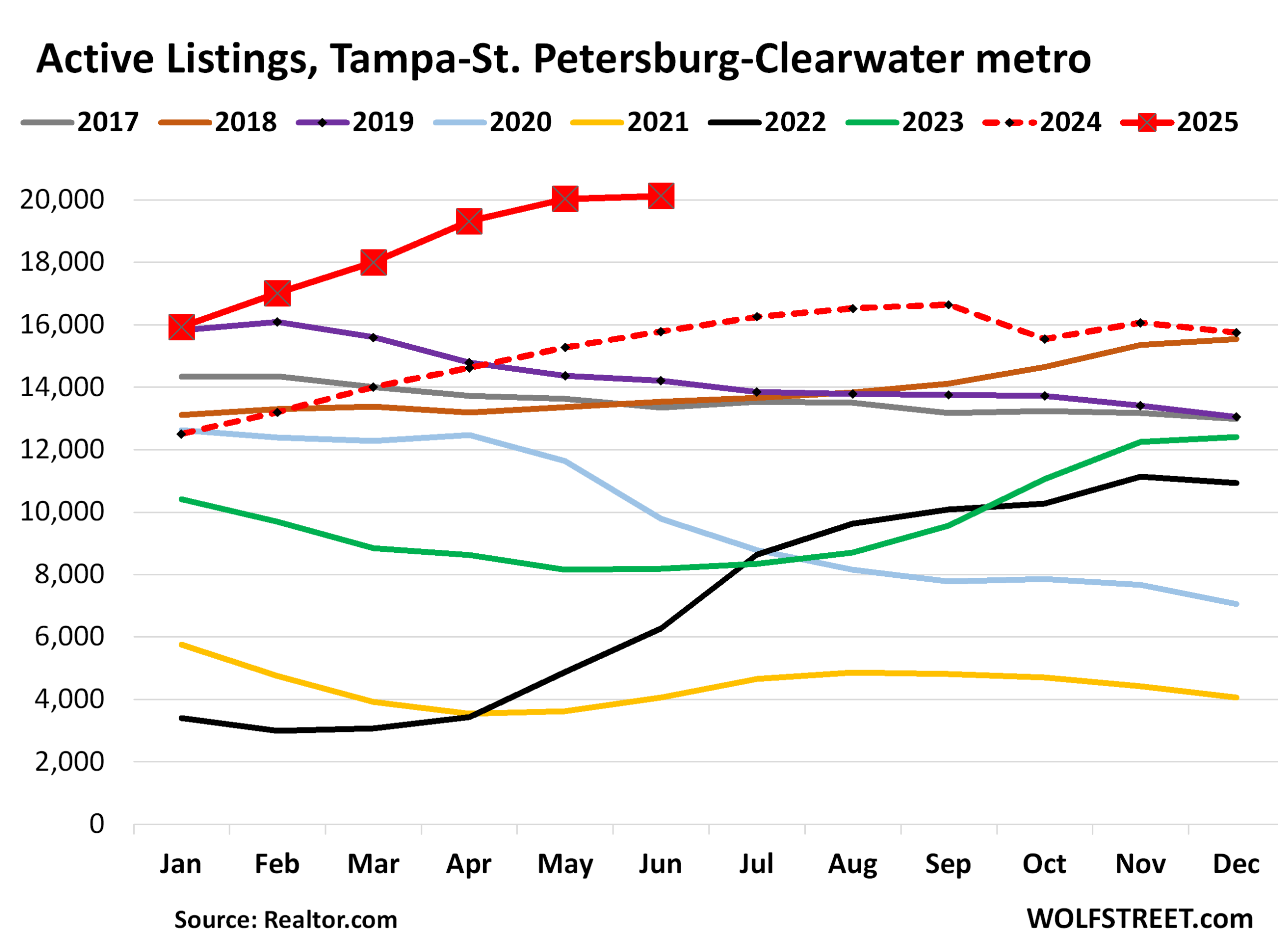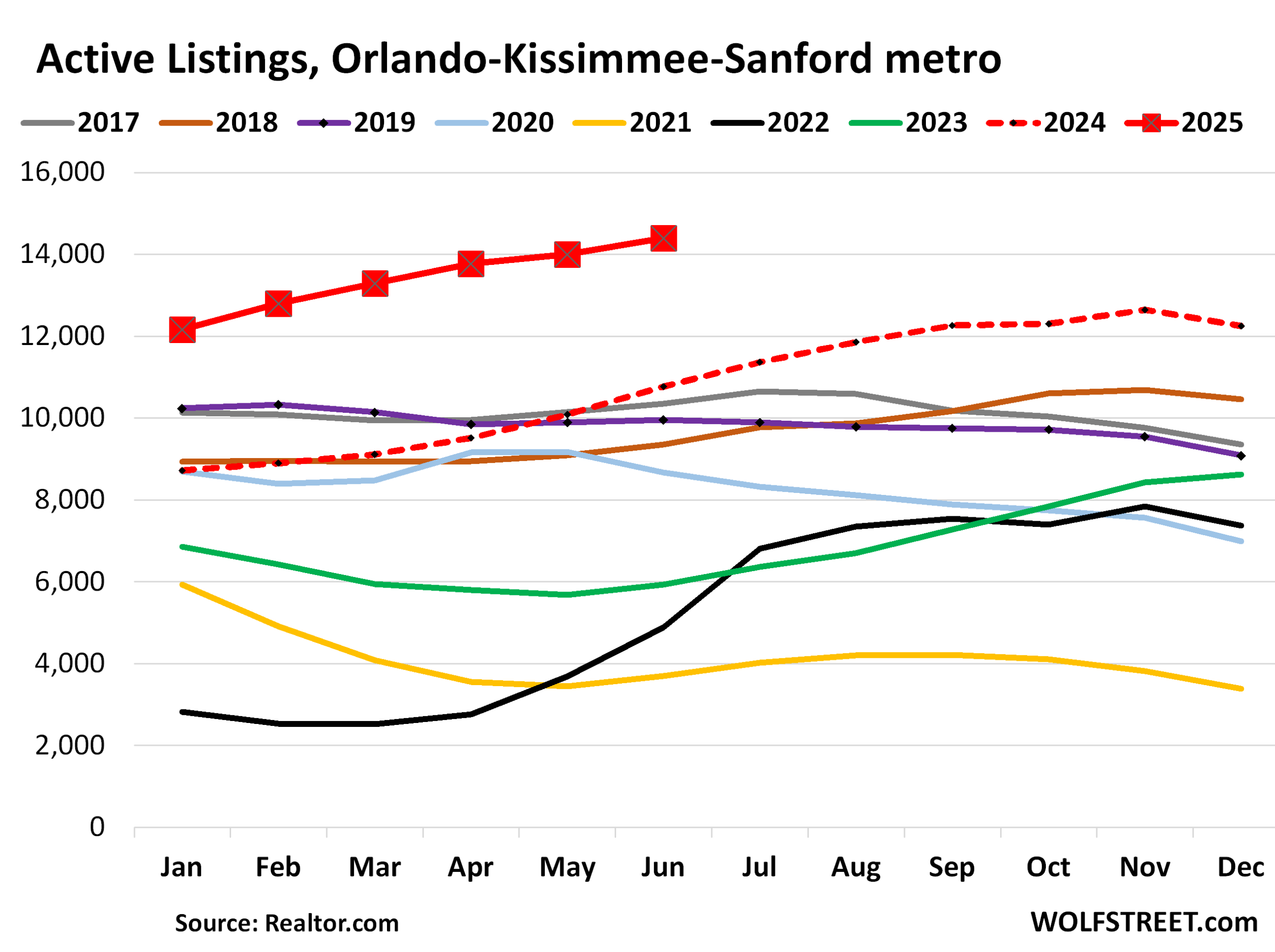 Florida and Texas metros occupy the top 5 spots on the list of the biggest year-over-year declines among our 33 metros. In June, the list grew to 21, from 18 in May and from 6 at the end of 2024.