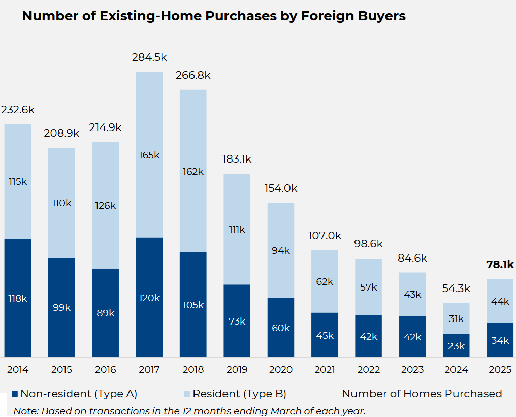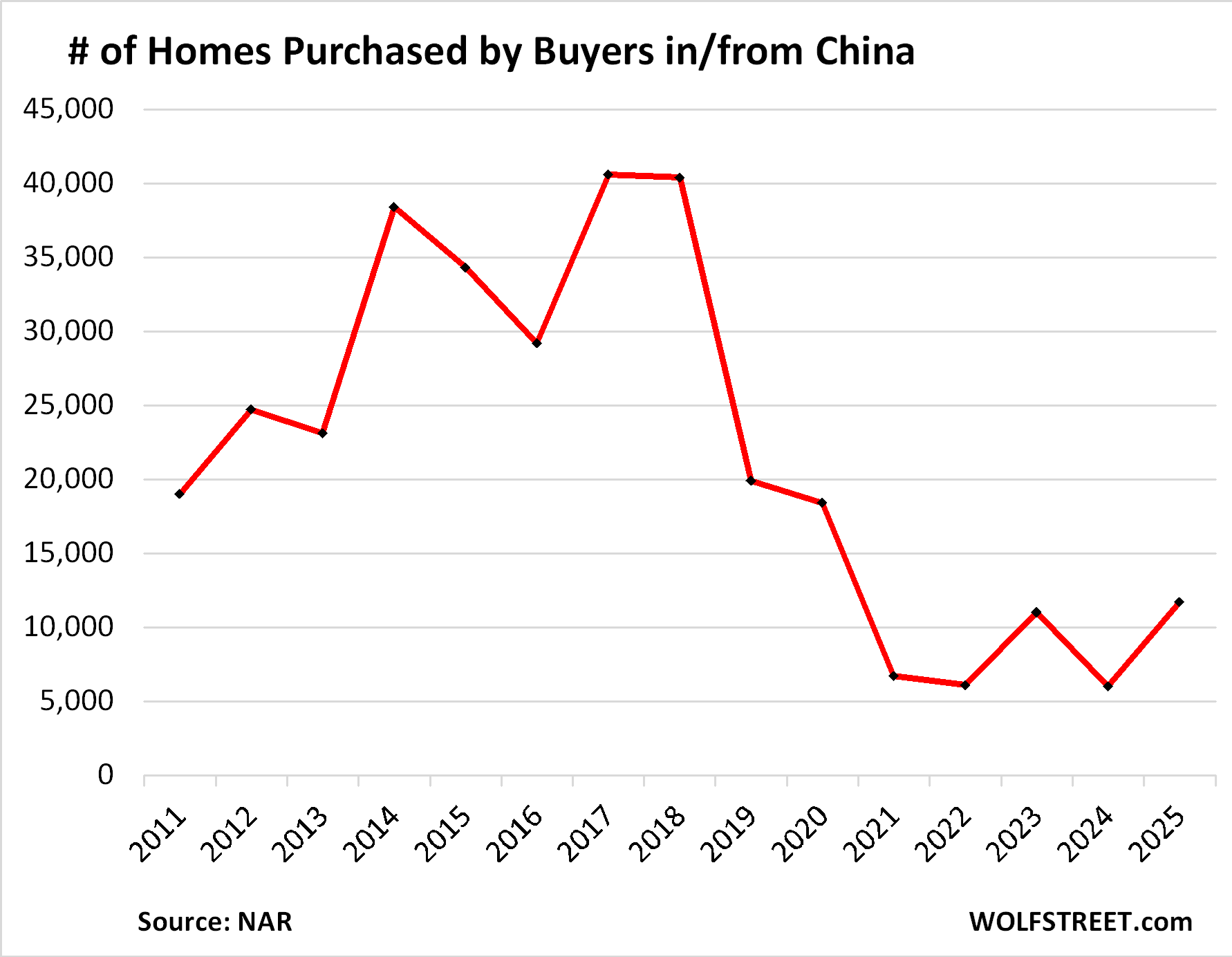 Chinese purchases have plunged by 71% from 40,600 homes in 2017 and 40,400 homes in 2018 to 11,700 homes in the current report “2025” that you cited.