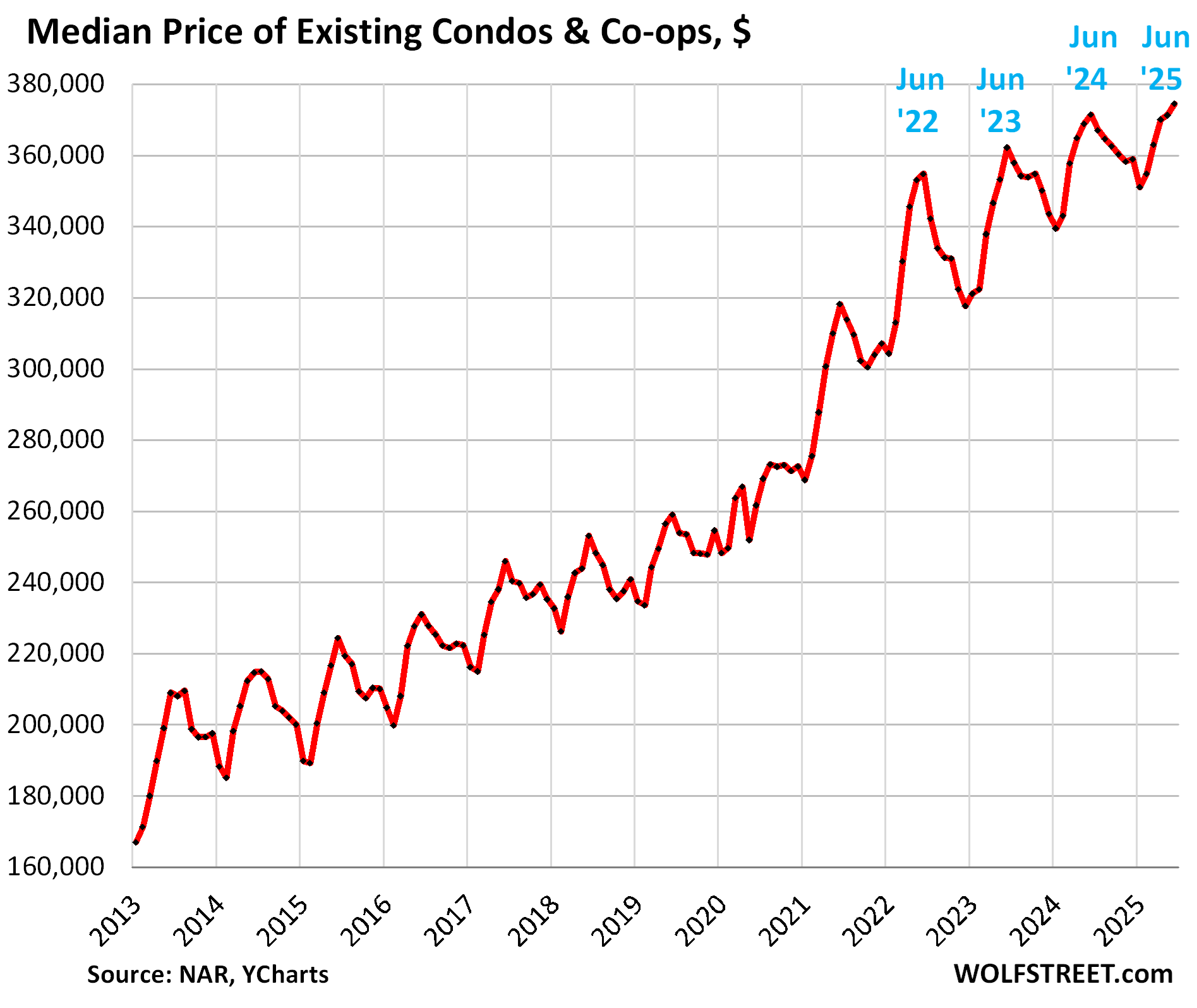 The median price of condos rose to $374,500 in June, up by 0.8% year-over-year.