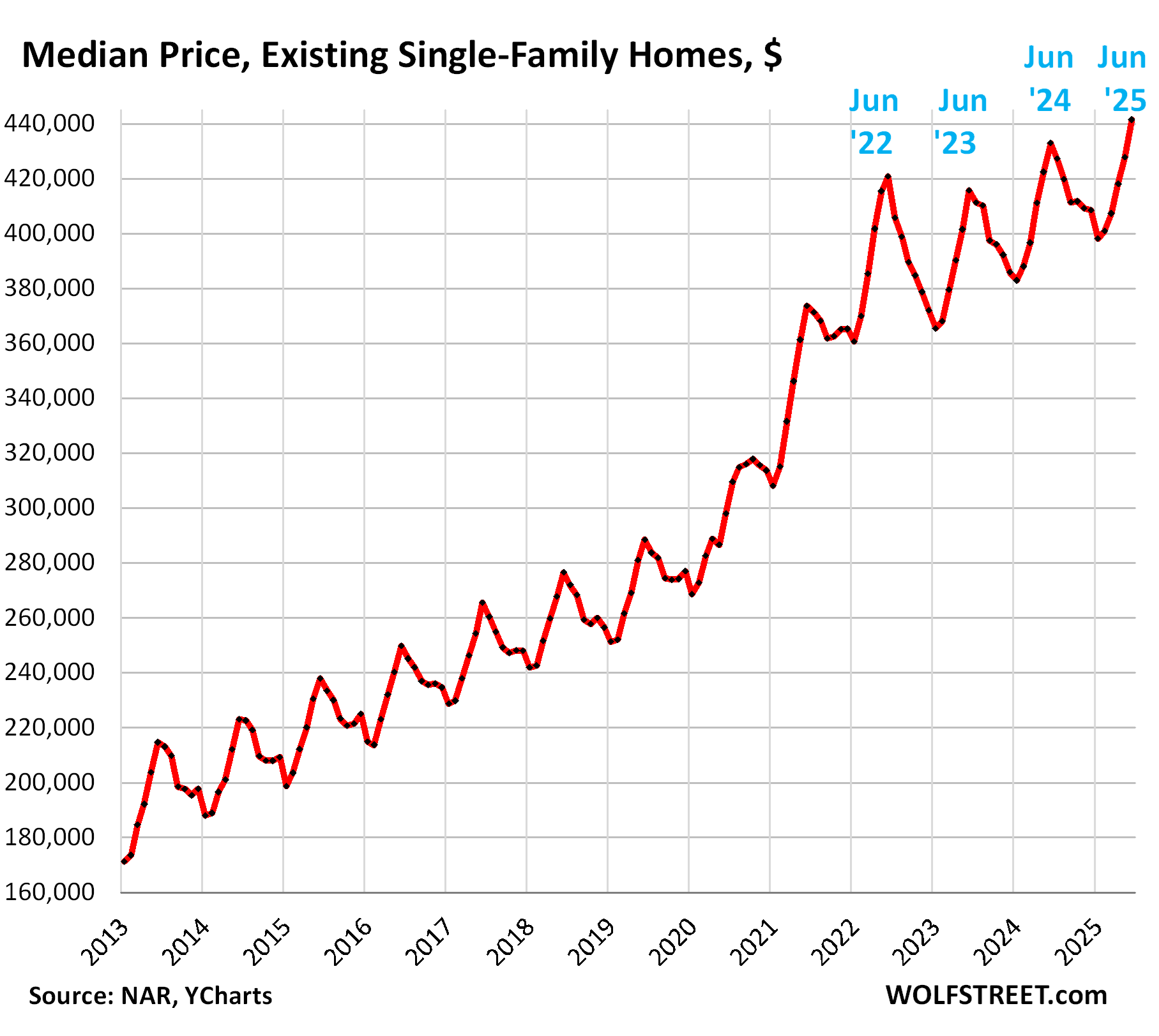 This measure of the national median price had exploded by 50% in the three years between June 2019 and June 2022, on top of the large price gains in the prior 10 years, driven by the Fed’s interest-rate repression and FOMO.