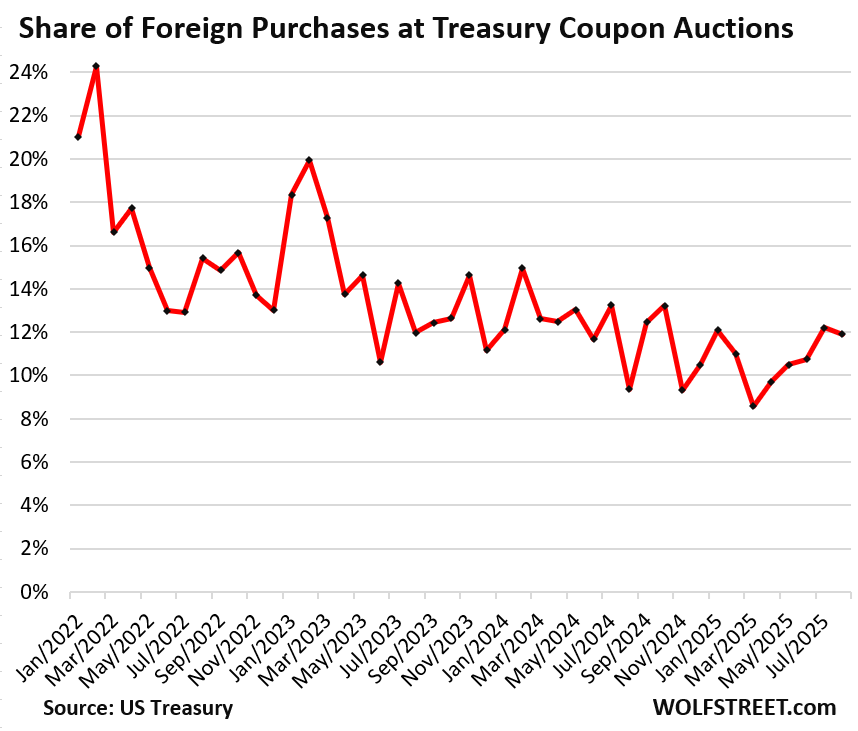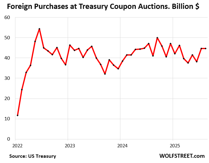 You’re citing BS and twist it to suit your fantasy theory. Actual foreign buying can only be seen in the Treasury Allotment Report, which comes out twice a month. Everything else is BS. Auctions through August 31: