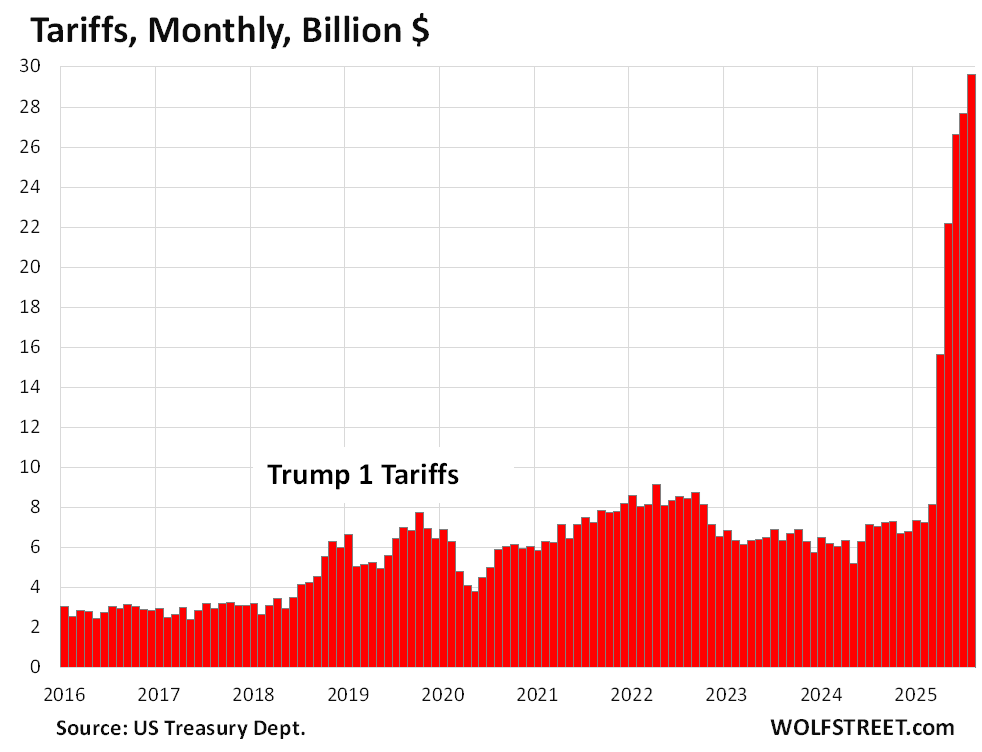 “Other nonfinancial” industries: This is the biggest nonfinancial category, with huge industries, mostly centered on services that are not heavily impacted by tariffs: professional, scientific, and technical services (includes some tech and social media companies); healthcare and social assistance; real estate and rental and leasing; accommodation and food services; construction; mining and oil-and-gas drilling; administrative and waste management services; educational services; arts, entertainment, and recreation; agriculture, forestry, fishing, and hunting.