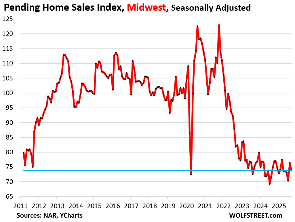 In the Midwest, pending sales fell by 3.4% in September from August and by 1.5% year-over-year.
