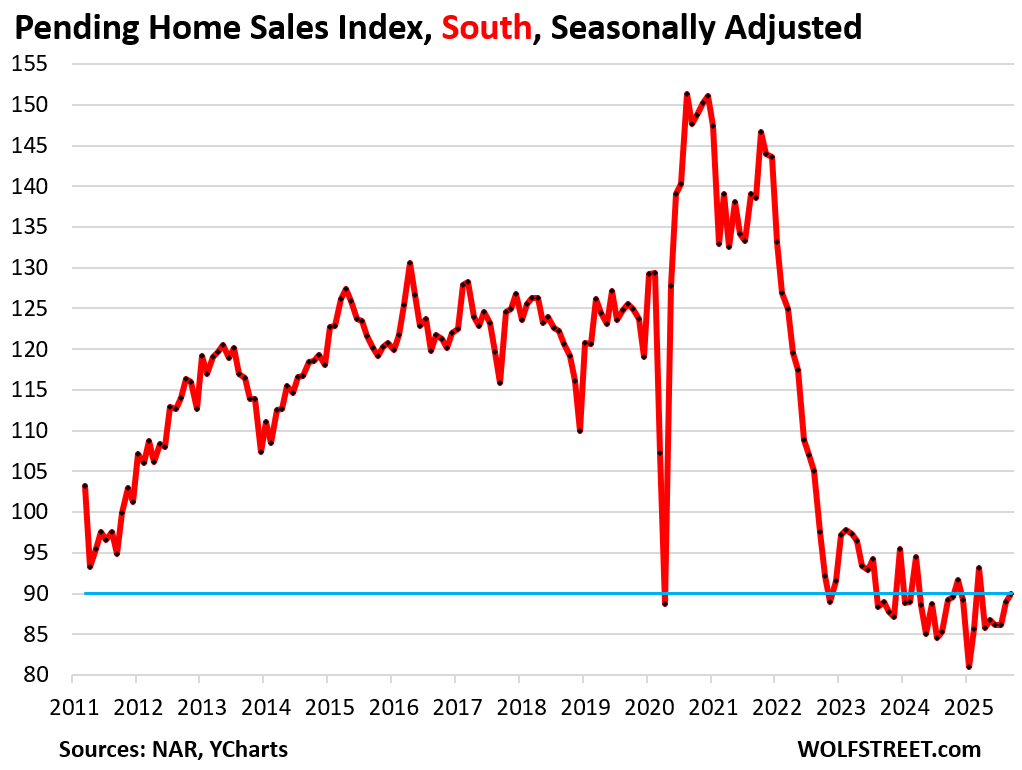 In the South, pending sales ticked up 1.1% in September from August, and by 0.9% year-over-year, seasonally adjusted, according to the NAR today.