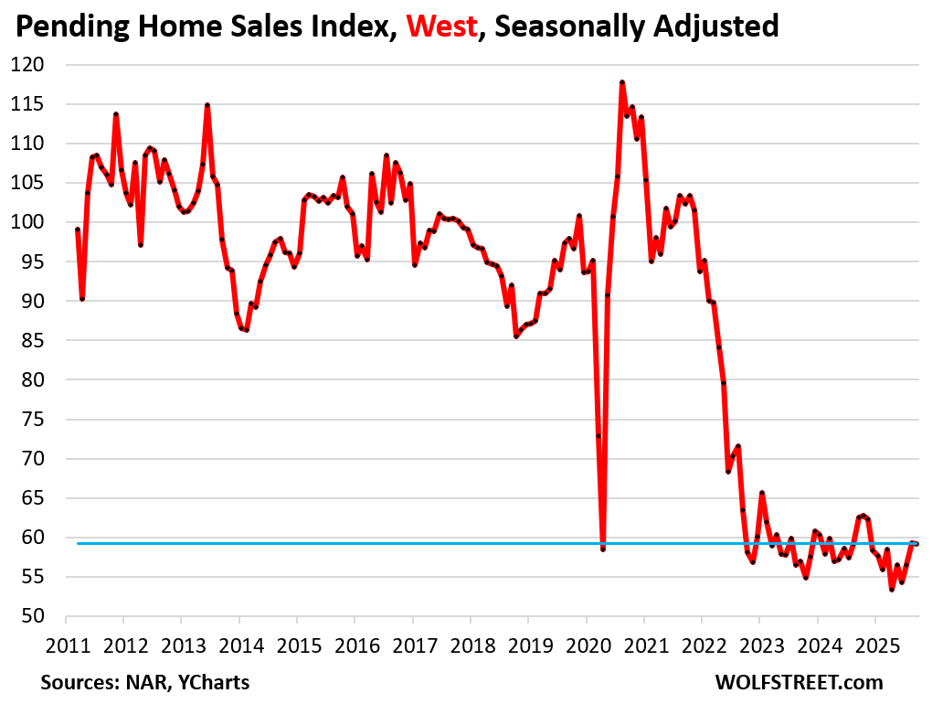In the West, pending sales dipped by 0.2% in September from August, and were down 5.3% year-over-year.