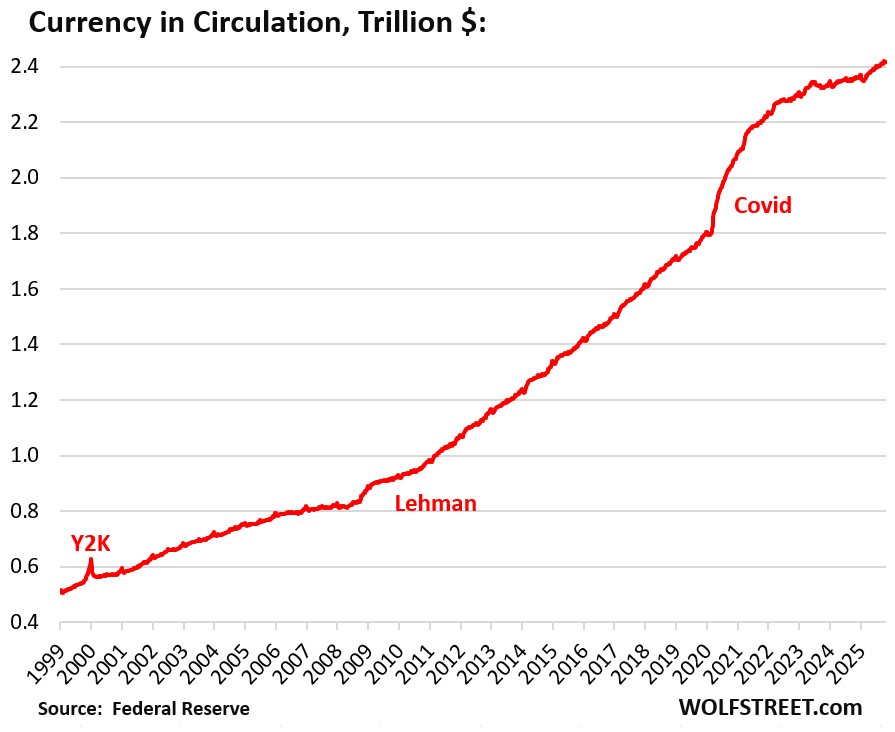 It’s hard for me to believe that there is more and more cash in circulation, with more and more of the US going “cashless”.