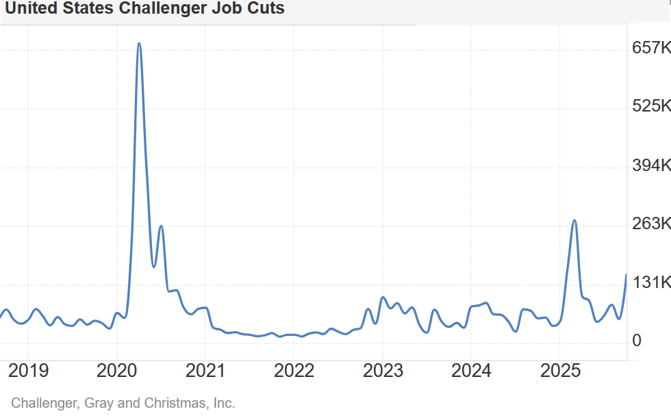 Chart by Trading Economics of the Challenger job cuts: