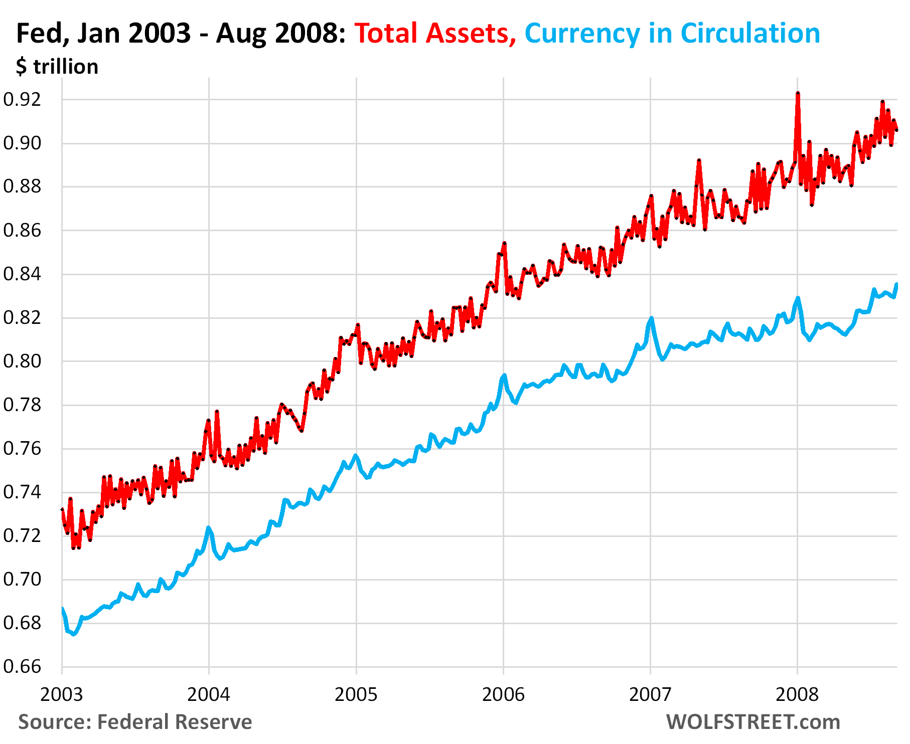 That Fed’s balance sheet, even before 2008, has ALWAYS grown with the economy (specifically current in circulation) except during QT.