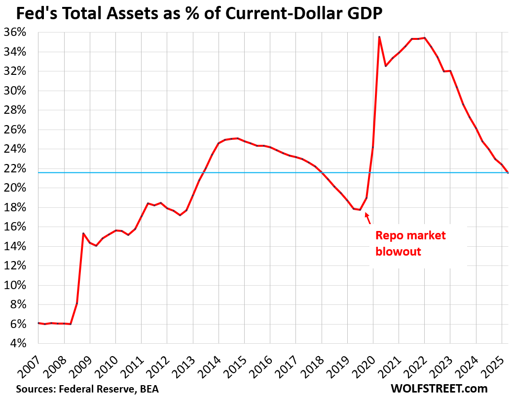Powell talked about this when he discussed the end of QT during the press conference after the October FOMC meeting: the size of the balance sheet as a percent of GDP. He said it was one of the indications that it was time to end the asset roll-off.