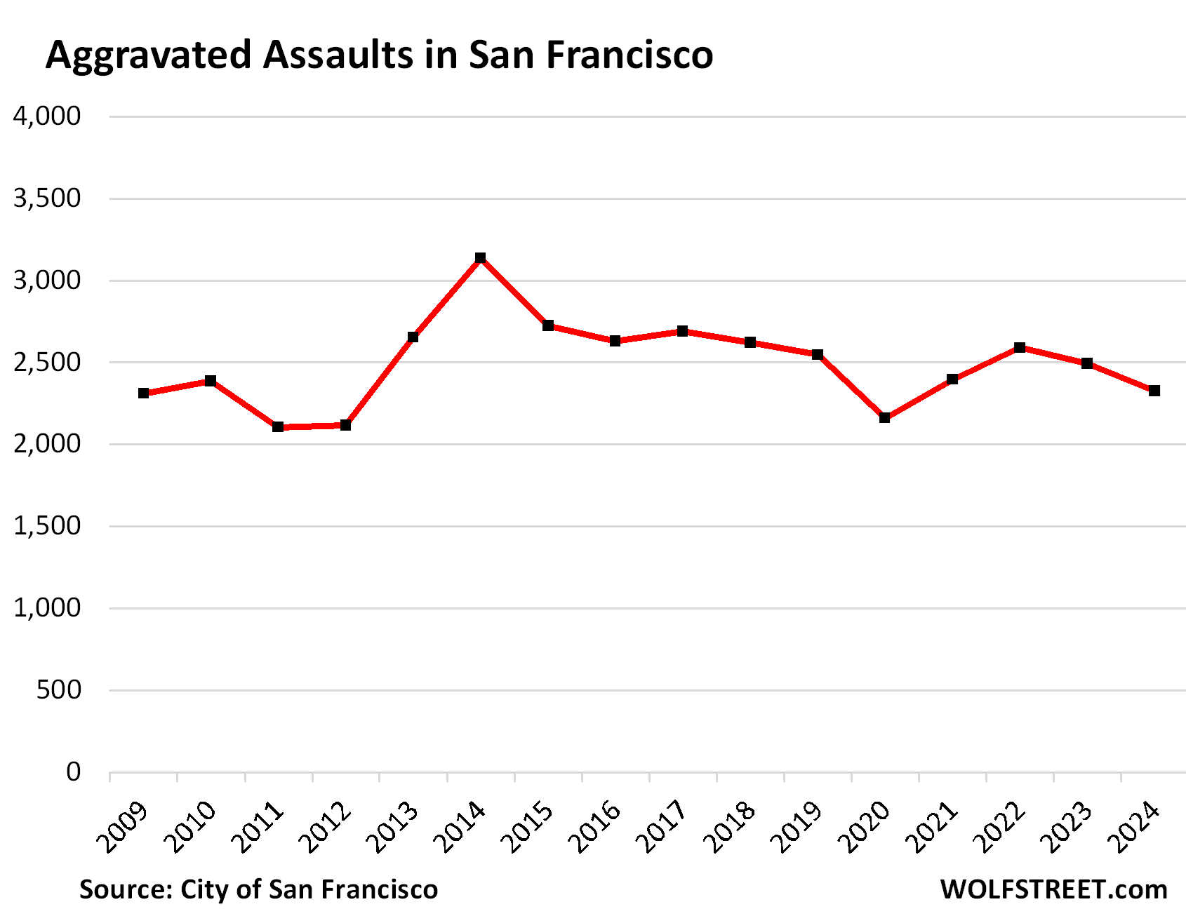 Number of Aggravated Assaults in San Francisco, by year: