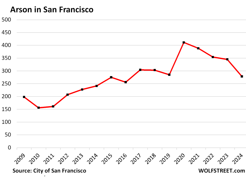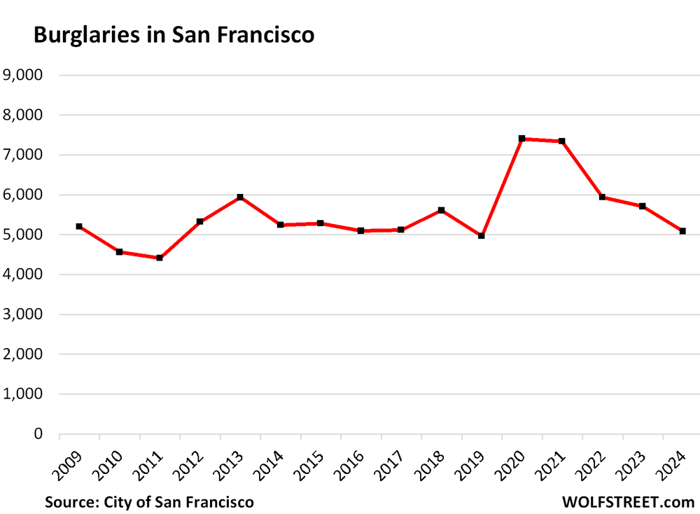 Number of Burglaries in San Francisco, by year: