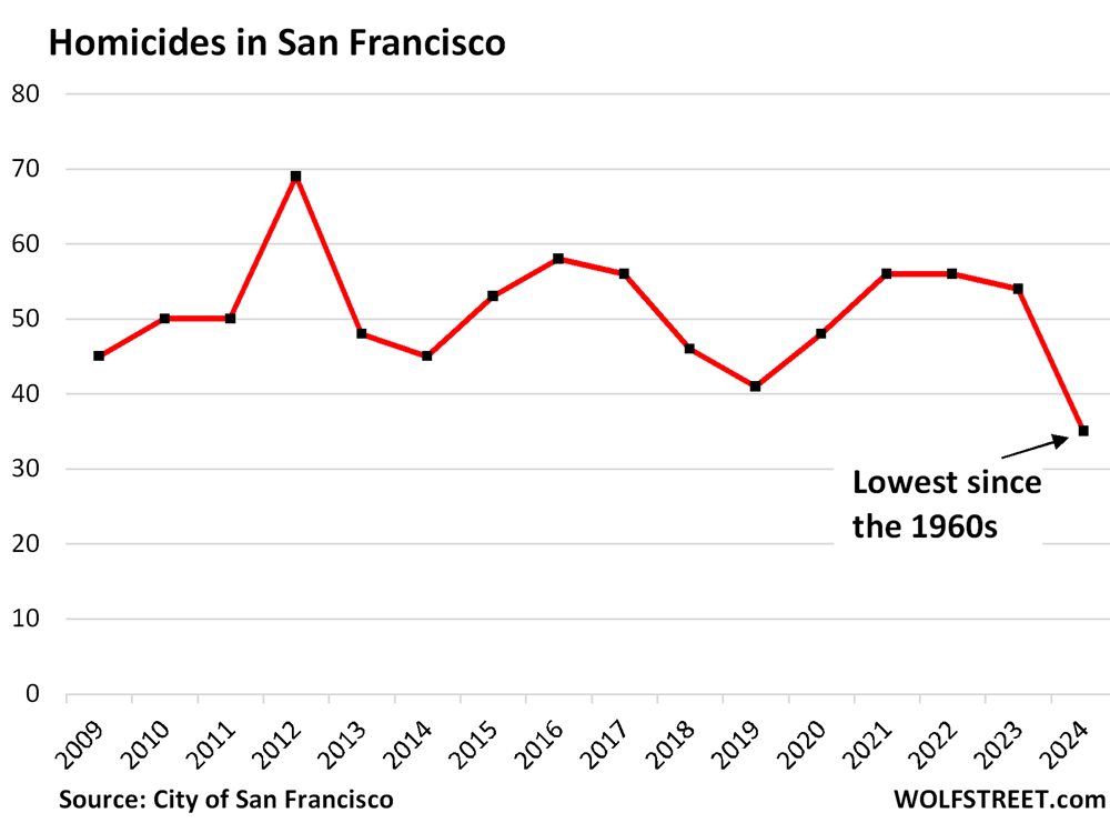 Number of Homicides in San Francisco, by year: