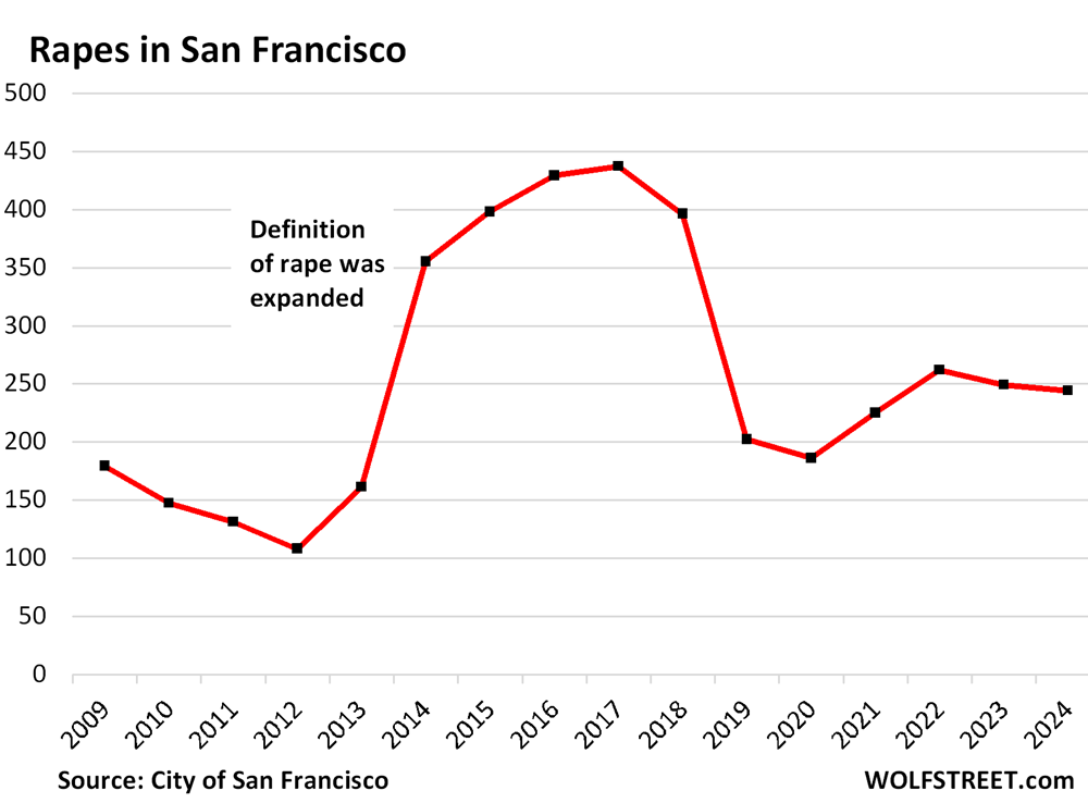 Number of Rapes in San Francisco, by year: